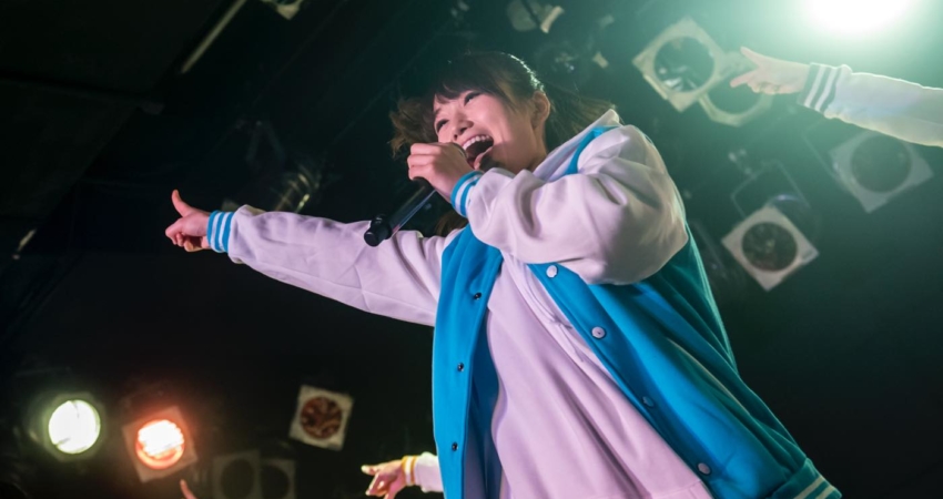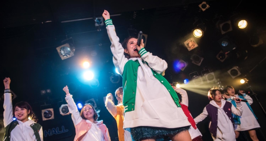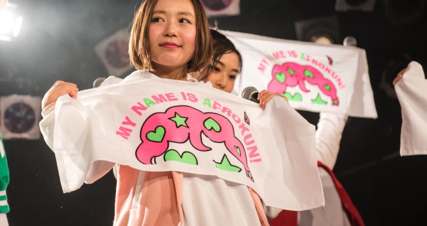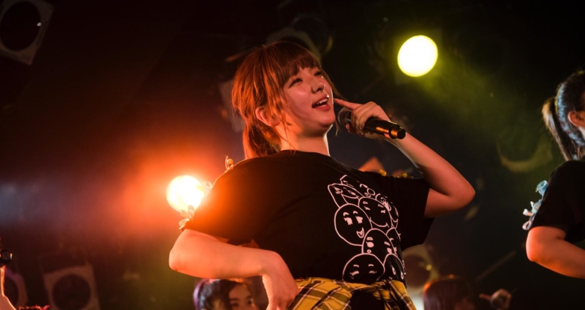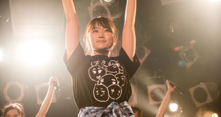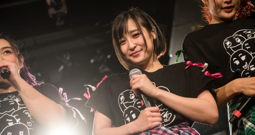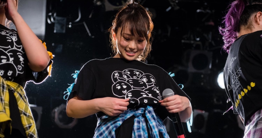 As Horikawa Ami was promoting the new goodies she designed, the show went on with the high-energy “Dry your Towel ~Kawakase taoru~”, the perfect occasion for the fans to use their brand new Afro-kun towels! The next song was one of the fans’ favorite songs, “Purun♫tto♡Heart”, and the group stopped another time to thank the audience for their support. As the last song of the first part of the show, leader Shima Rika took the microphone. “We performed this last song only once, two years ago in this very same Harajuku Astrohall, for our first one-man live,” she said, hinting towards some events happening in between like Asakawa Misaki’s graduation. Videos and photos were therefore allowed for the whole song, capturing this special and emotional moment.