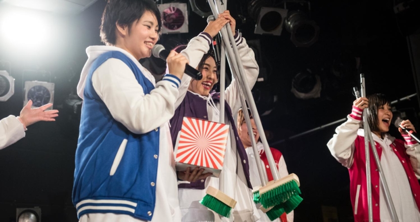 The talk session ended in a lottery raffle for the audience, in which they could win… the brush brooms the girls just used for the dance number?! The audience was divided between laughing and staying speechless, as we could hear some fans jokingly protesting: “but what about those who have to take the bullet train home?!” asked a couple of them, laughing, to which Saihara Marino replied “Don’t worry, we will sign them, it is worth it!”, making everyone laugh even more. The raffle went on cheerfully and nine lucky fans went home with a brush broom signed by one of the Chubbiness members!