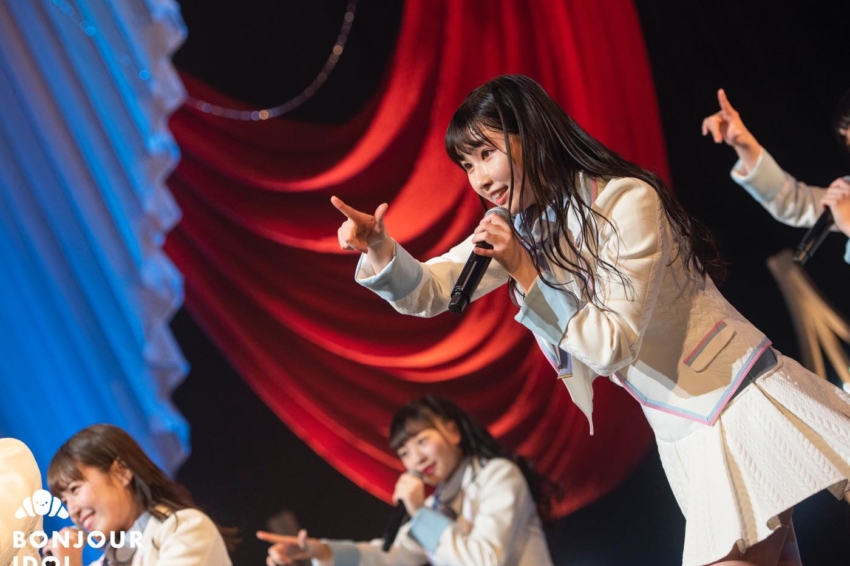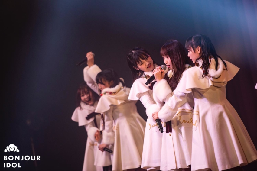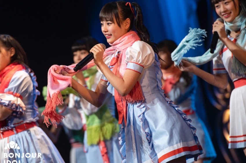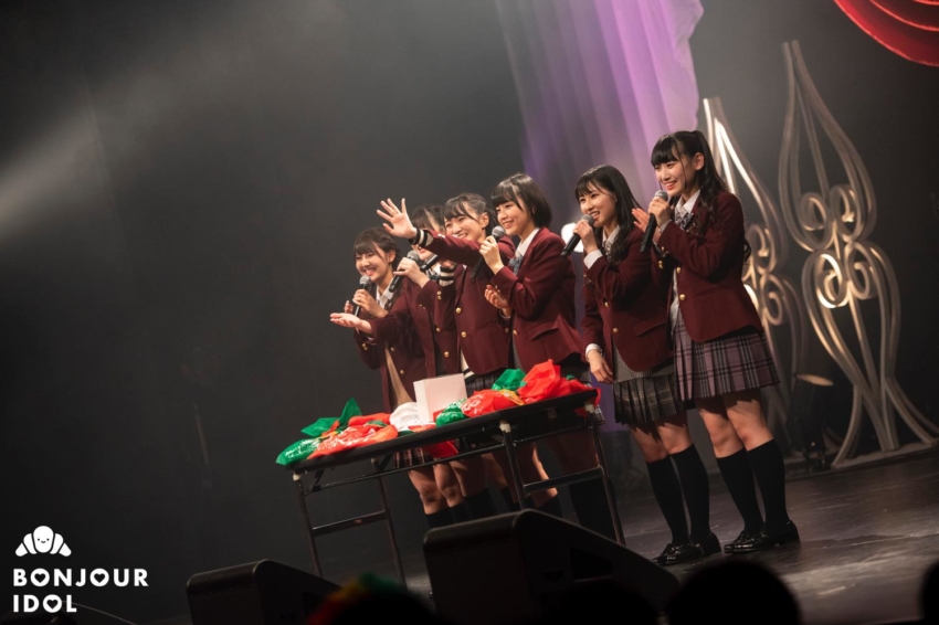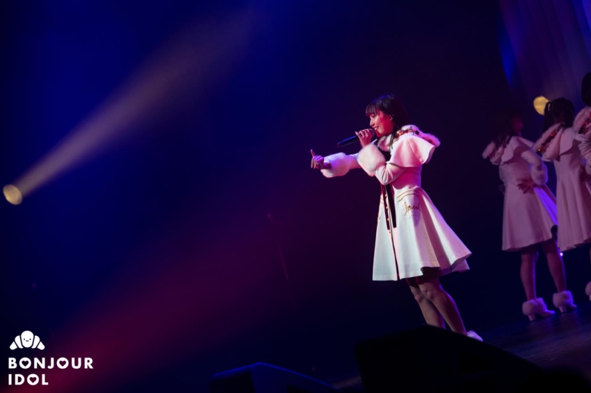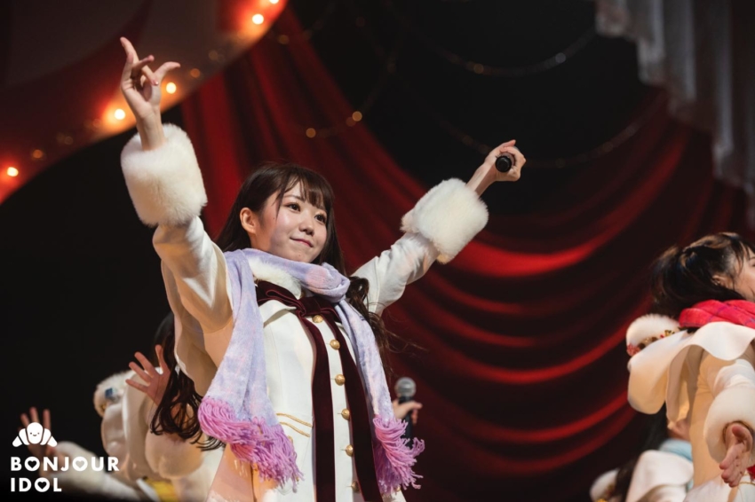 When the lights went out, an ocean of multicolored glowsticks illuminated the 750-seats theater. Despite being unable to stand up during the performance, as soon as the members appeared on stage, the atmosphere didn’t take long to skyrocket in the audience. The much-awaited Christmas song of the group “Bokura no Seifuku Christmas” opened the concert! The members, wearing the outfits from their latest single “Want you! Want You!” with their scarves, symbols of this song, bewitched the audience in a true Holiday atmosphere: friendly and festive. We once again enjoyed the beautiful voices of Noguchi Iori and Morohashi Sana during their respective solo lines.