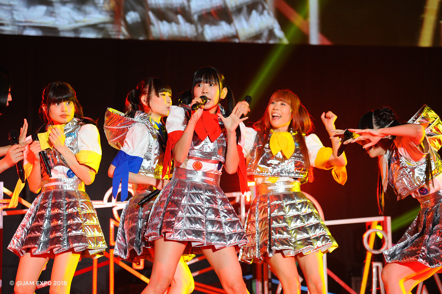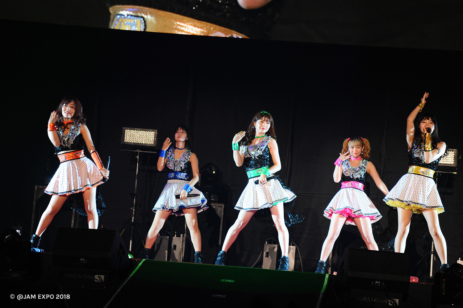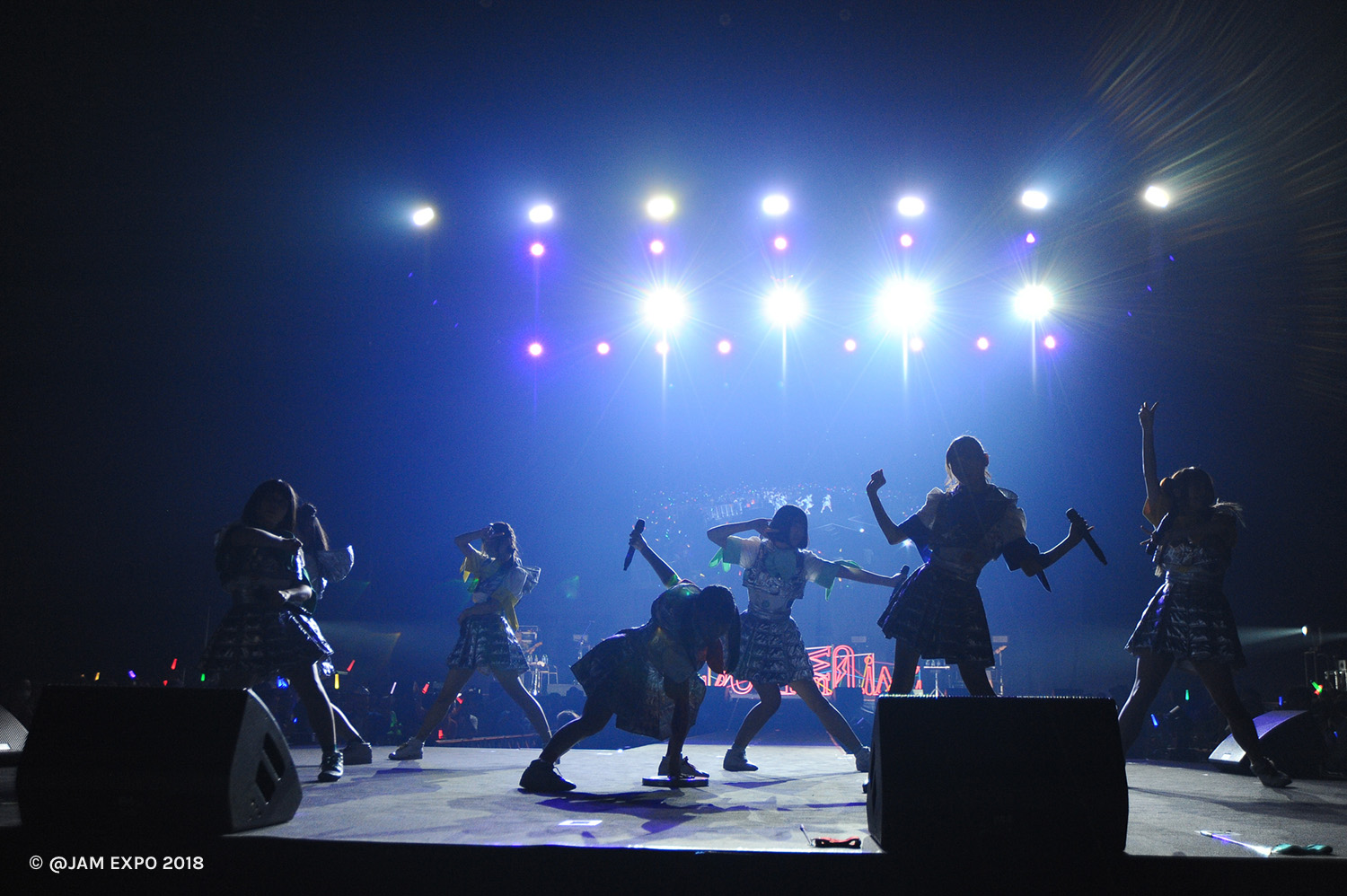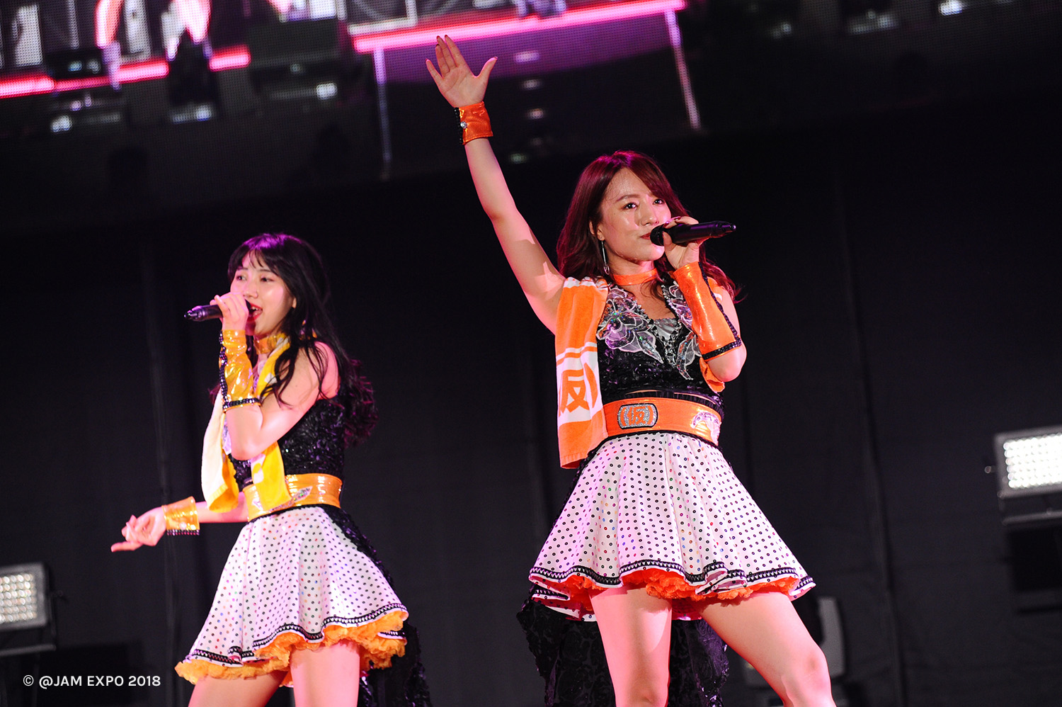 The five hot-up members of Up Up Girls (KARI) did not fail to fire up the main stage during their own stint. The group is a regular at summer festivals and their energy and dynamic songs are always there! This was their first five-members performance at @JAM EXPO event after the departure of Sengoku Minami and Sato Ayano in September 2017.