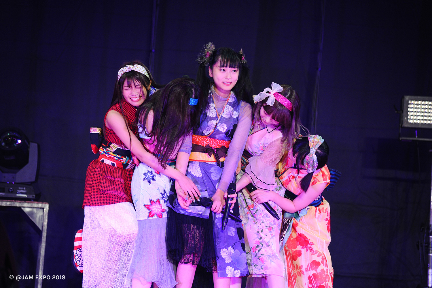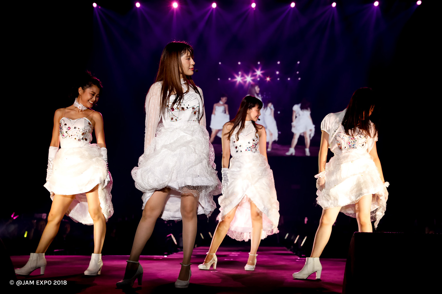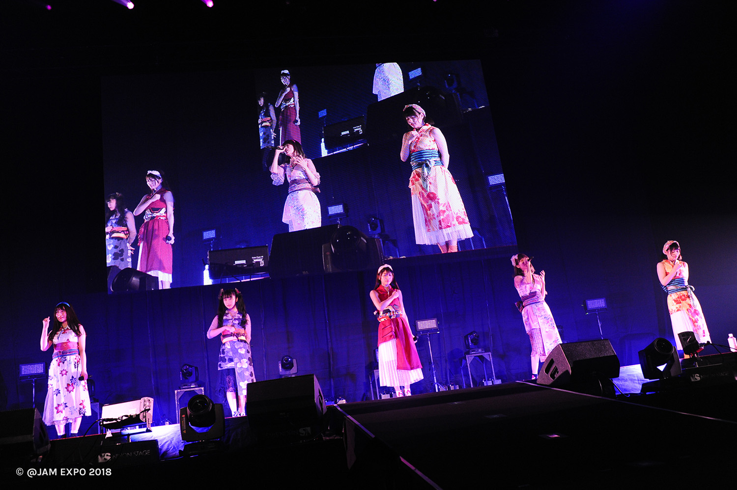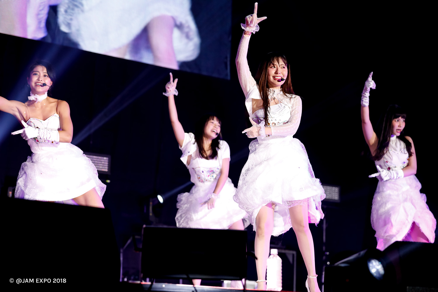 The five hot-up members of Up Up Girls (KARI) did not fail to fire up the main stage during their own stint. The group is a regular at summer festivals and their energy and dynamic songs are always there! This was their first five-members performance at @JAM EXPO event after the departure of Sengoku Minami and Sato Ayano in September 2017.
