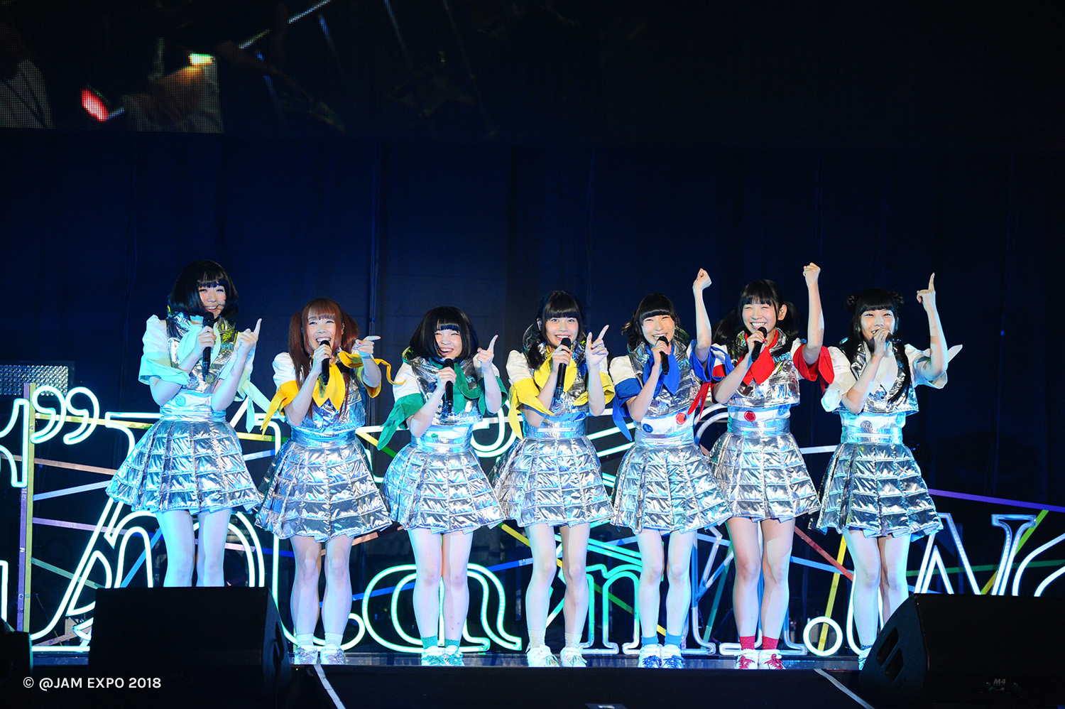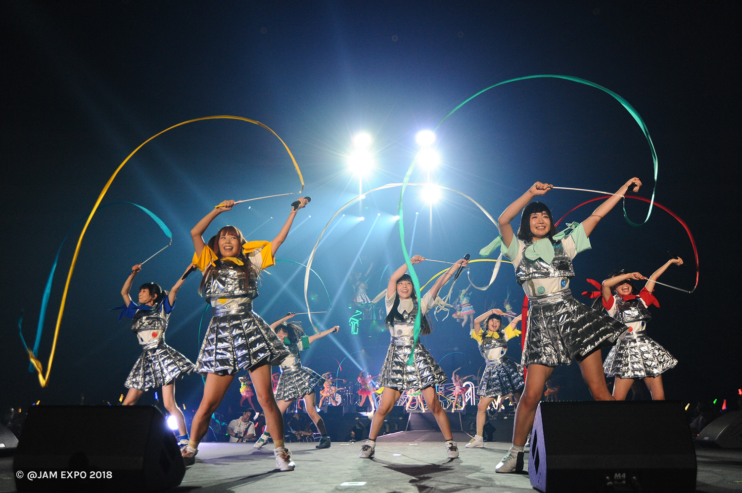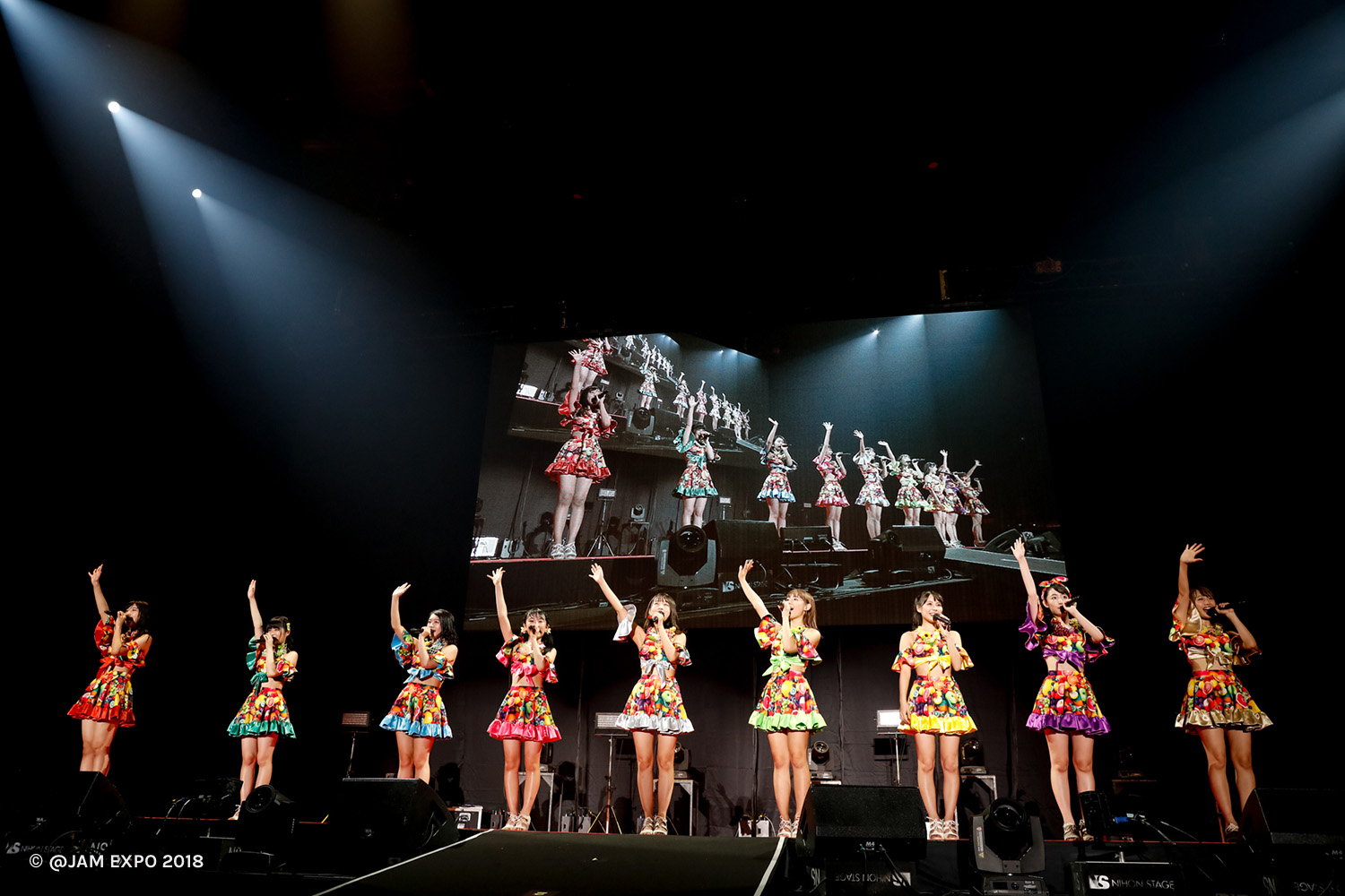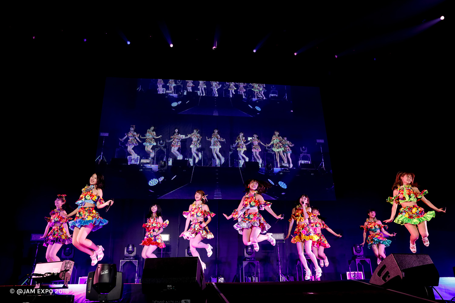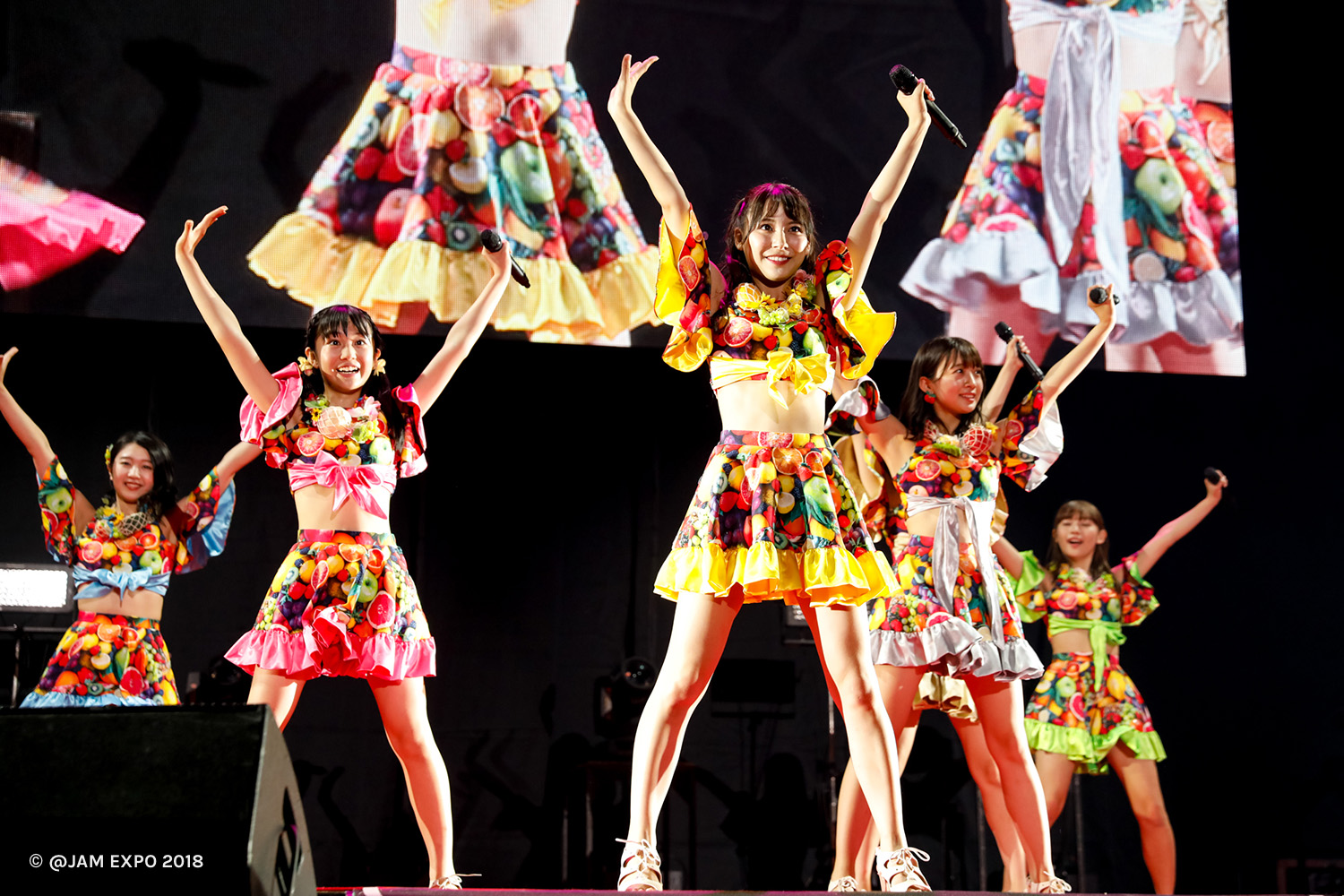 The five hot-up members of Up Up Girls (KARI) did not fail to fire up the main stage during their own stint. The group is a regular at summer festivals and their energy and dynamic songs are always there! This was their first five-members performance at @JAM EXPO event after the departure of Sengoku Minami and Sato Ayano in September 2017.