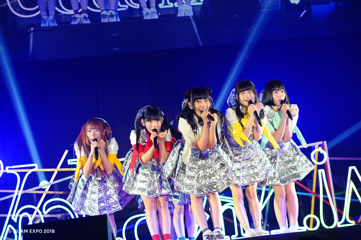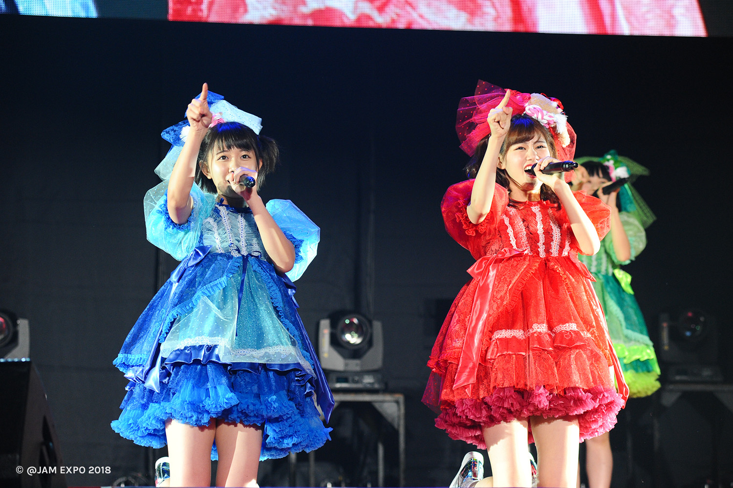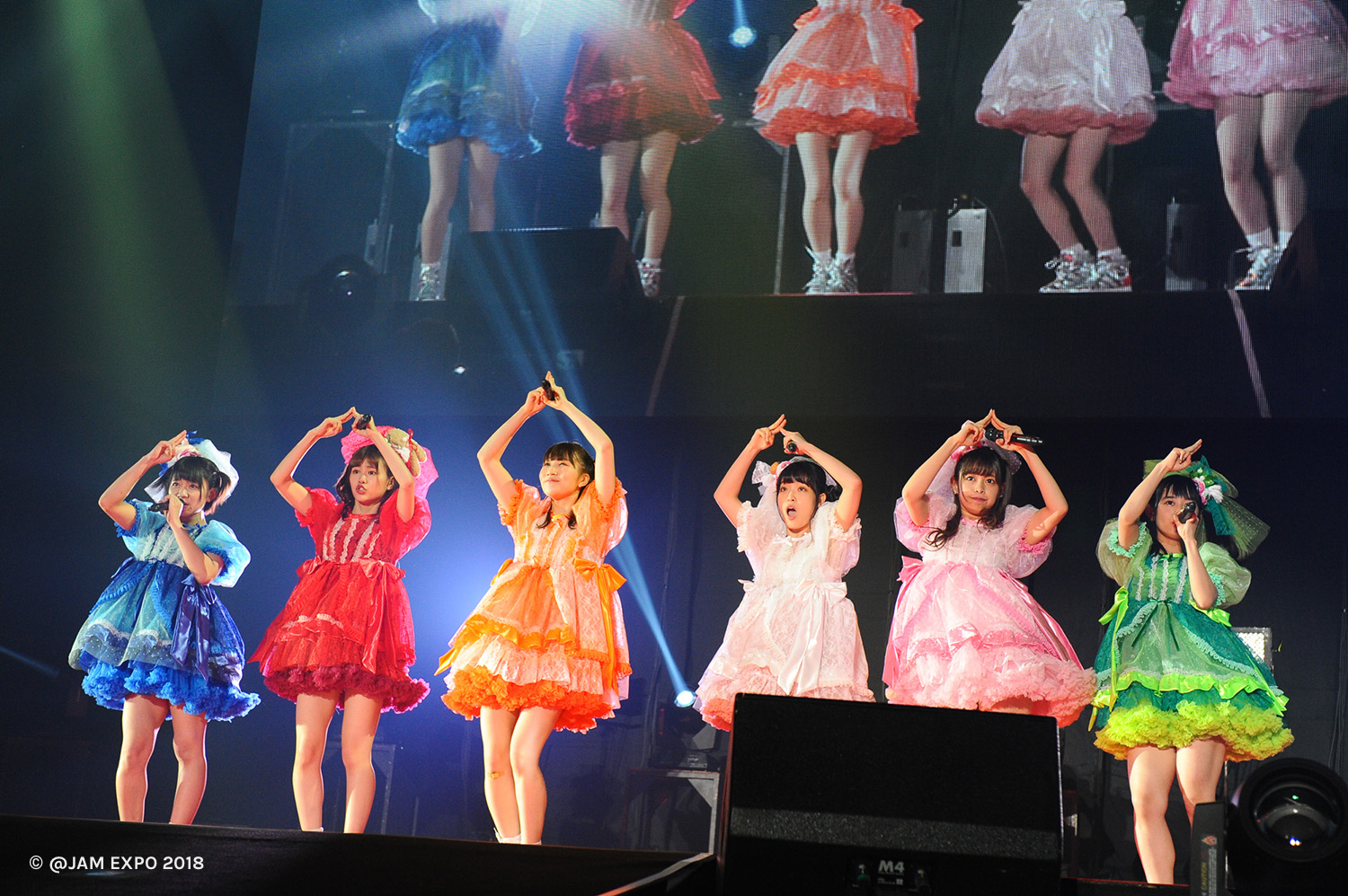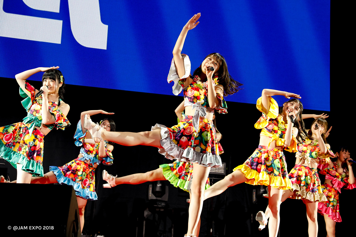 The five hot-up members of Up Up Girls (KARI) did not fail to fire up the main stage during their own stint. The group is a regular at summer festivals and their energy and dynamic songs are always there! This was their first five-members performance at @JAM EXPO event after the departure of Sengoku Minami and Sato Ayano in September 2017.
