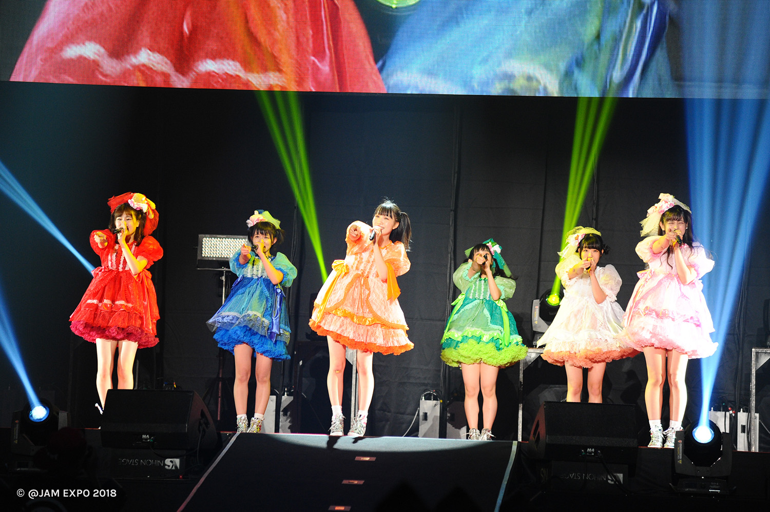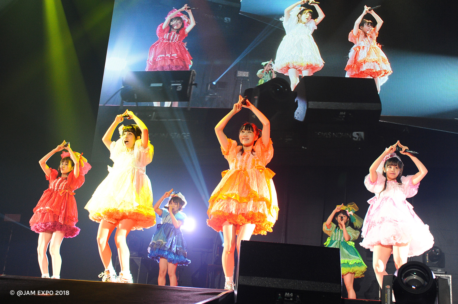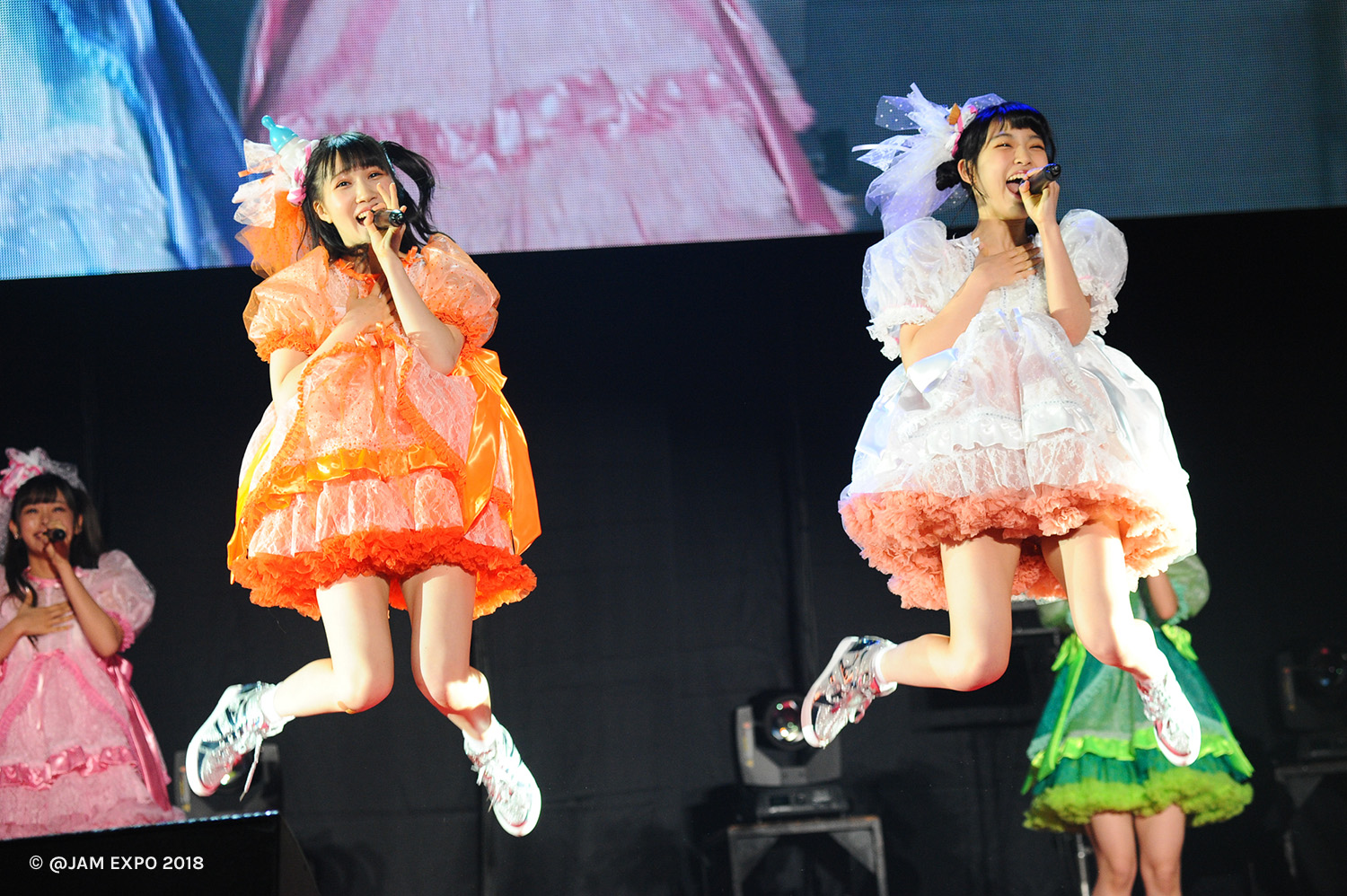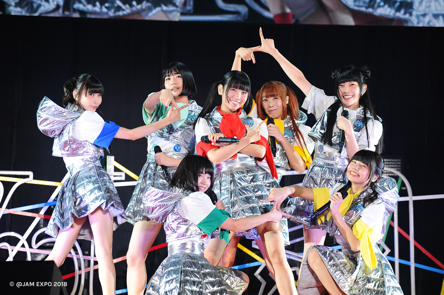 The five hot-up members of Up Up Girls (KARI) did not fail to fire up the main stage during their own stint. The group is a regular at summer festivals and their energy and dynamic songs are always there! This was their first five-members performance at @JAM EXPO event after the departure of Sengoku Minami and Sato Ayano in September 2017.