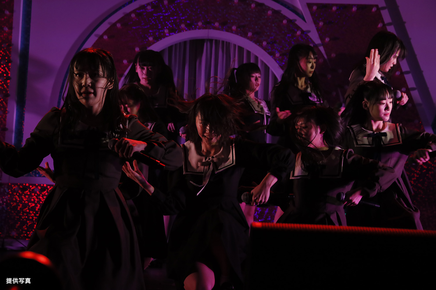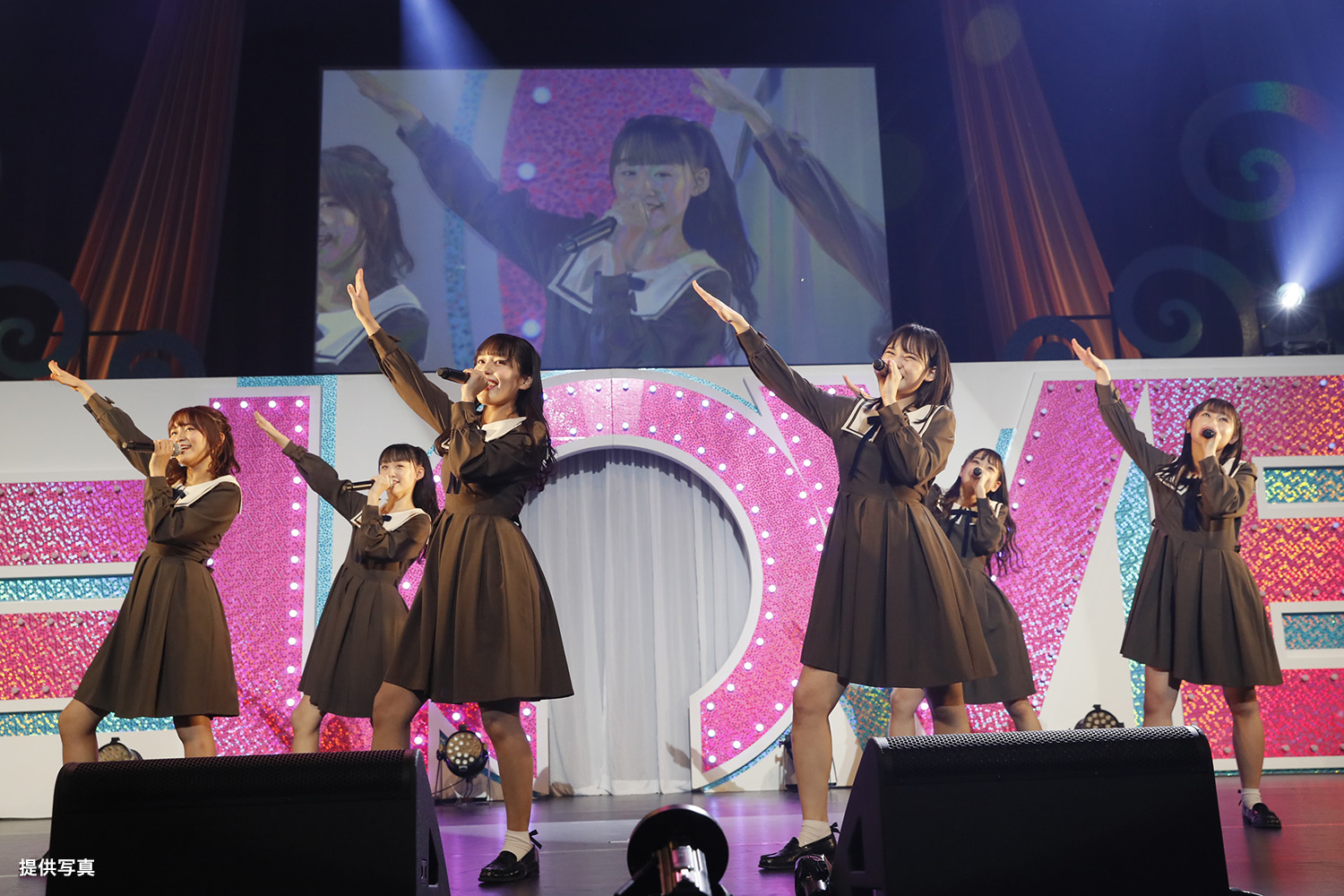 After a short MC, Hitomi, left alone on stage, told the story of the group’s debut, from their auditions to the very important day of their first appearance at the Tokyo Idol Festival 2017, which they ‘will never forget’. Sequences from the same era were shown, including their preparation for the festival backstage, until the moment they walked up the stairs towards their debut performance.