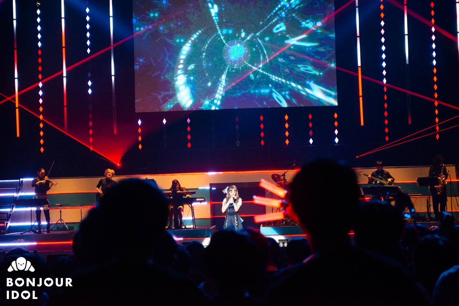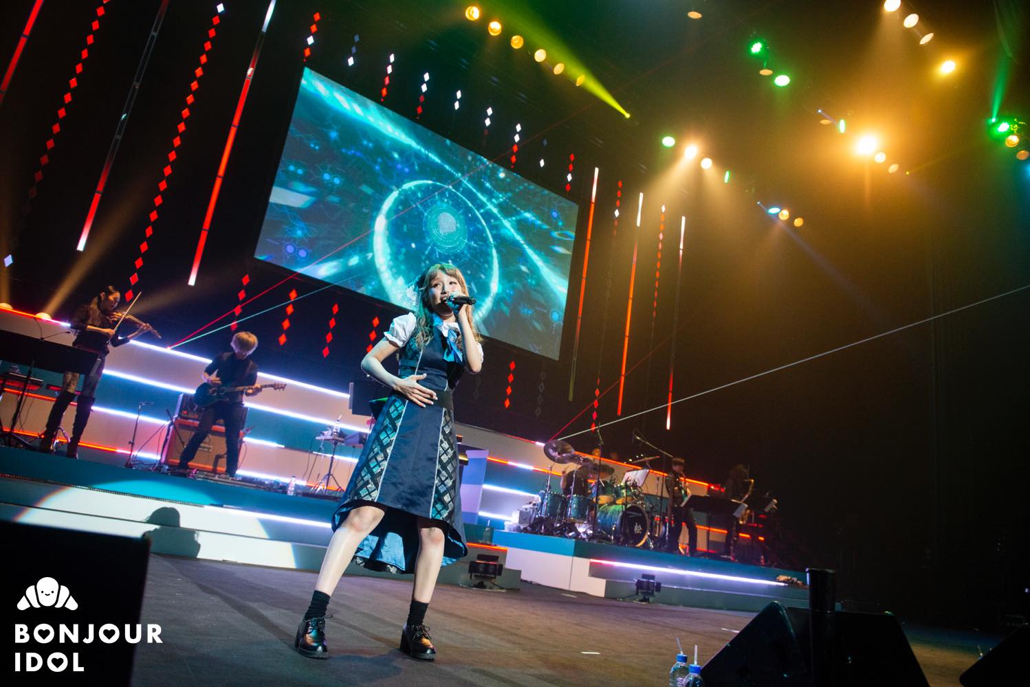The members shared their impressions of the evening so far, comparing it to a dream and sharing how Ruka mistakenly went to Zepp Tokyo (the venue of their 6th one-man live), noting that it wasn’t the first time that she ended up somewhere she wasn’t meant to be. Yue stepped forward again as she began singing “Dear Best Friend”, her song from the 2012 Asia Diva Audition which began her path towards becoming an idol. Gliding across the stage and harmonizing their voices together, akishibu project’s “Way to Dream” was like a calm before a storm, which arrived in the form of the synth-heavy uptempo dance rock of “Change the World”.