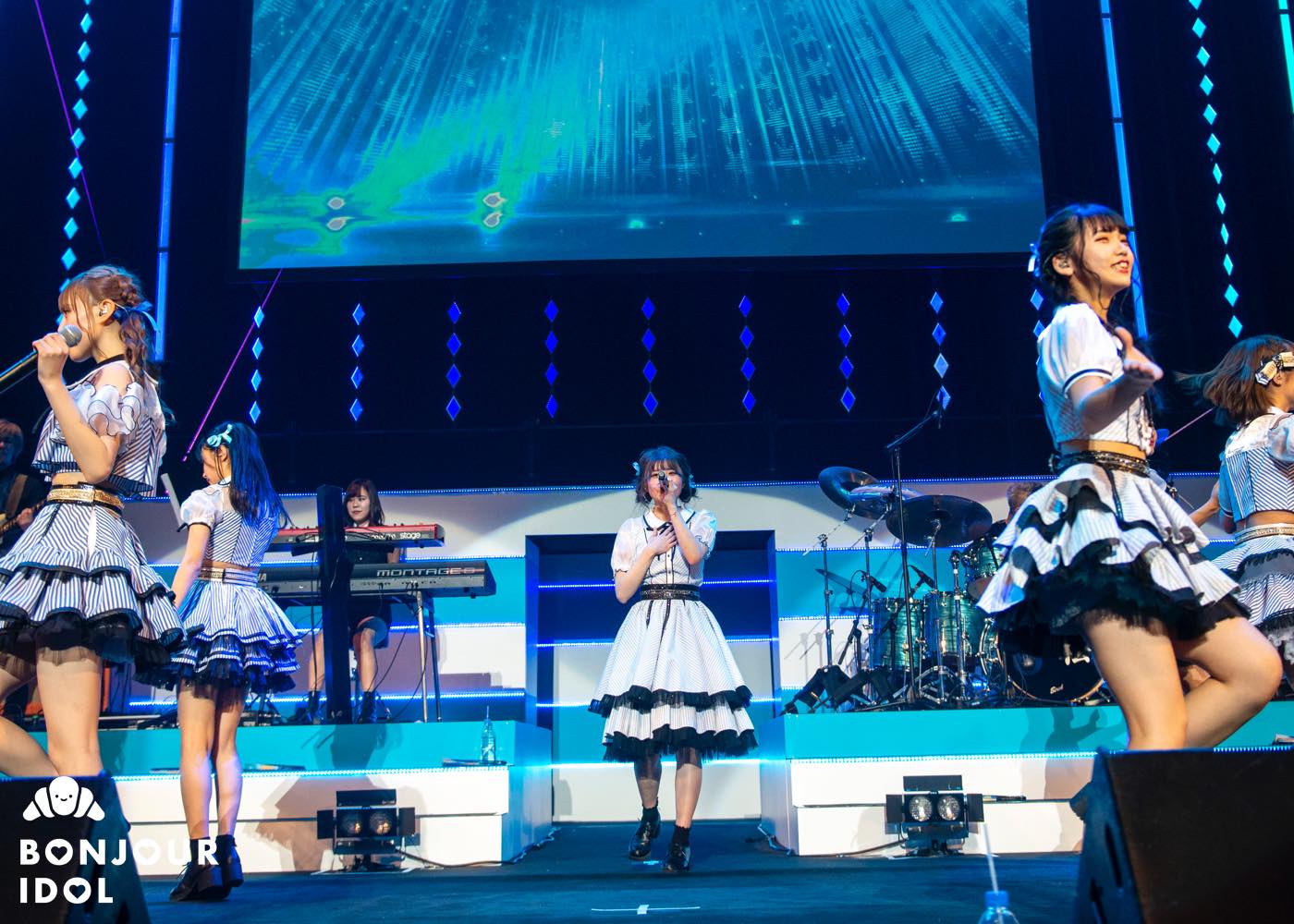 Bouncing along through “Candid Love” and swinging their fists through lasers to “NEXT GATE”, akishibu project took a brief pause to welcome the fans to Nakano Sunplaza, sharing their excitement at standing on the stage that so many famous idols had graced before.
