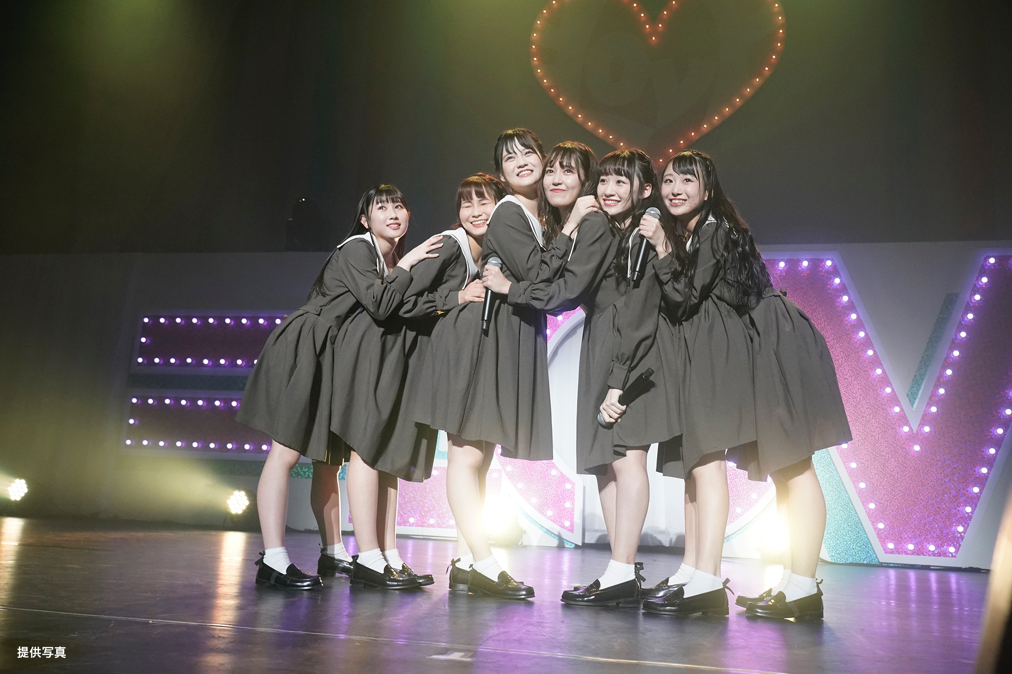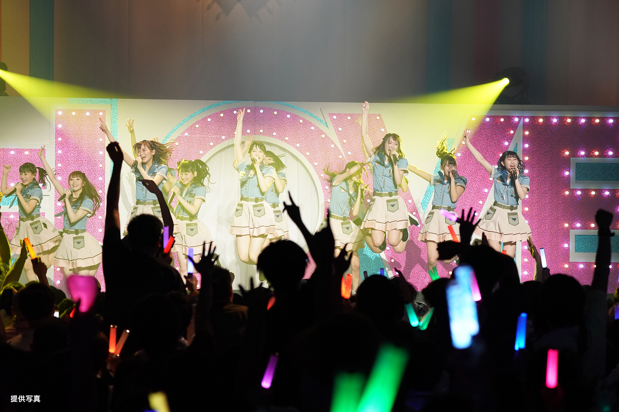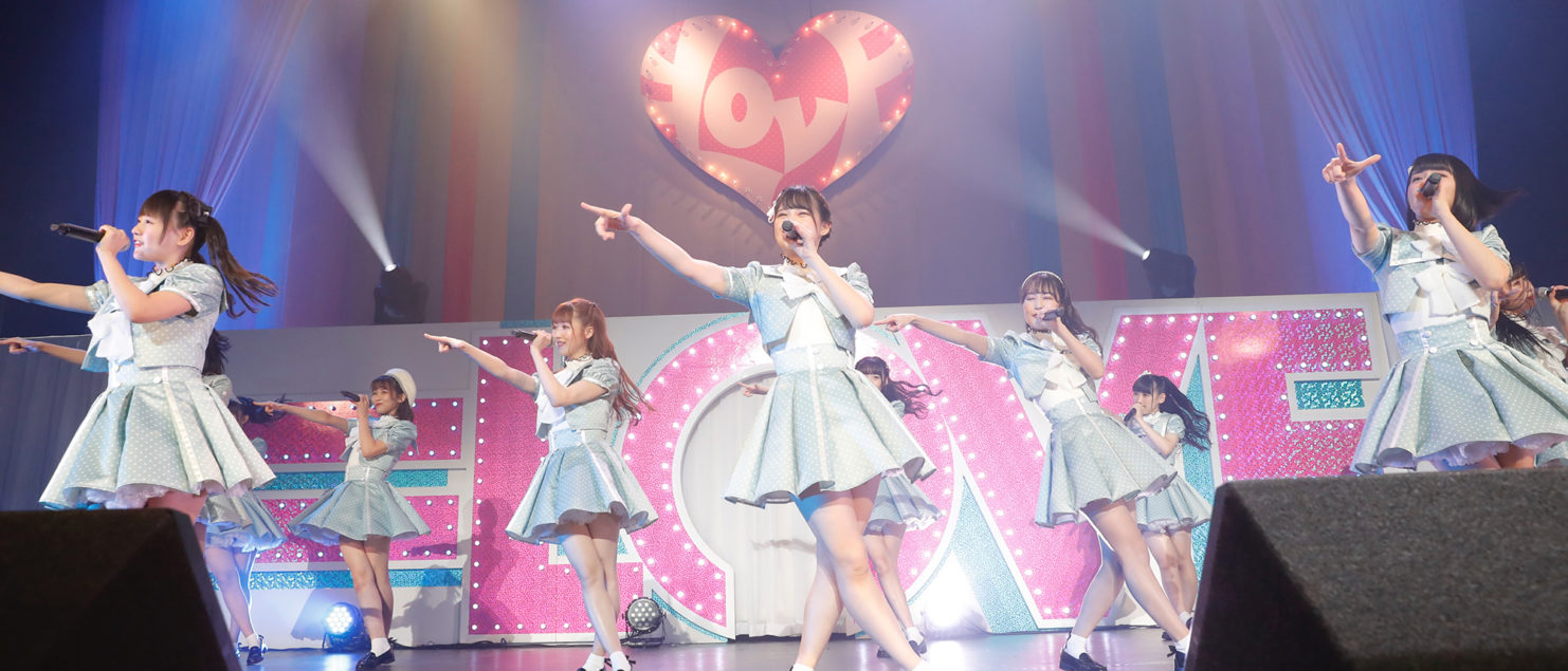 A VTR recalling the preparation for their first concert gives way to an energetic instrumental to get the fans excited, filling up the entire audience at Zepp Tokyo. With their biggest smiles and beautiful pastel blue outfits, =LOVE began the festivities with “= LOVE”. “Bukatsu-chuu ni Au Nante Omottetanda” and its fan calls made the walls vibrate in the venue, leading up to “Youkoso! Ikorabu Numa” and “Kiara, Tasuke ni Kita zo!” before the first break of the evening.