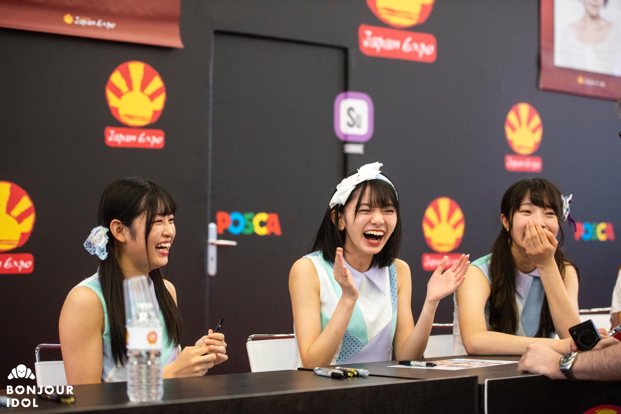 Through their big smiles, their energetic performances and eagerness to meet a brand new crowd, they completely won over the idol fans at Japan Expo but also the regular crowd that kept growing bigger and bigger in front of the Tsubame stage, hypnotized by their catchy music and fun choreographies. Aside from all their showcases, the girls walked all over the convention to give out flyers and take pictures with people. Their sign sessions and photocalls were also a big success amongst fans and regular attendees of all ages and backgrounds.
