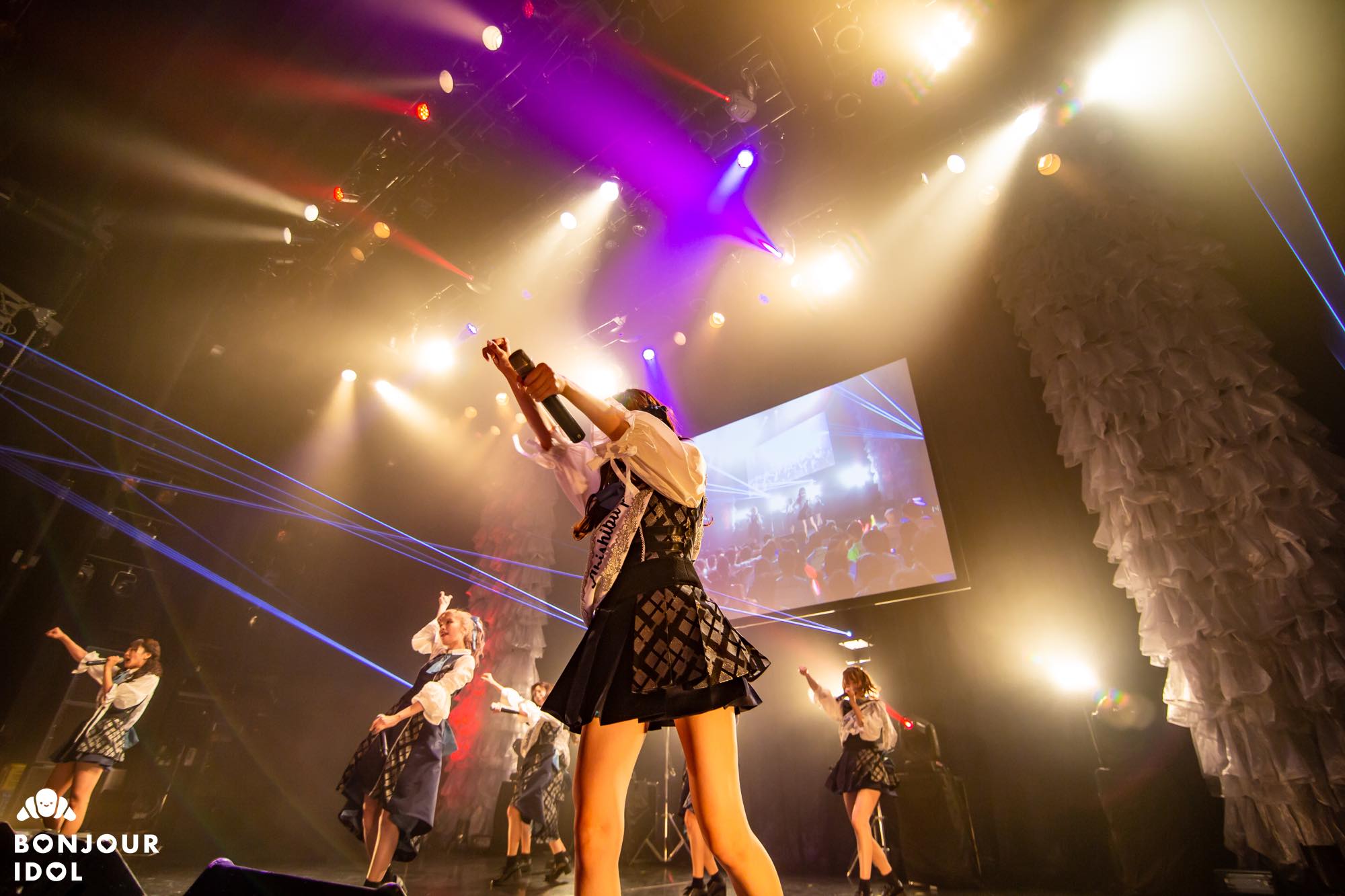 Fluttering along to the traditional Japanese melodies of “Yume Hanabi” and bubbly sounds of “Natsu Love”, akishibu project navigated closer to the conclusion of the night. Bright blue lasers sliced through the warm air as the members kicked up their feet to their classics “Eternal Blue ~Kimi to Boku to Sora to Umi~” and “Manatsu no Serenade”. After rocking through “Be yourself” the energy in the venue erupted as the familiar piano intro of “Midarekami Fighting Girl” rang out, followed by the last barrage of “Kera” calls for Hinako as the song revved into high gear. Powered by a whirling tornado of towels, akishibu project breezed to the end of their set with “Restart”.