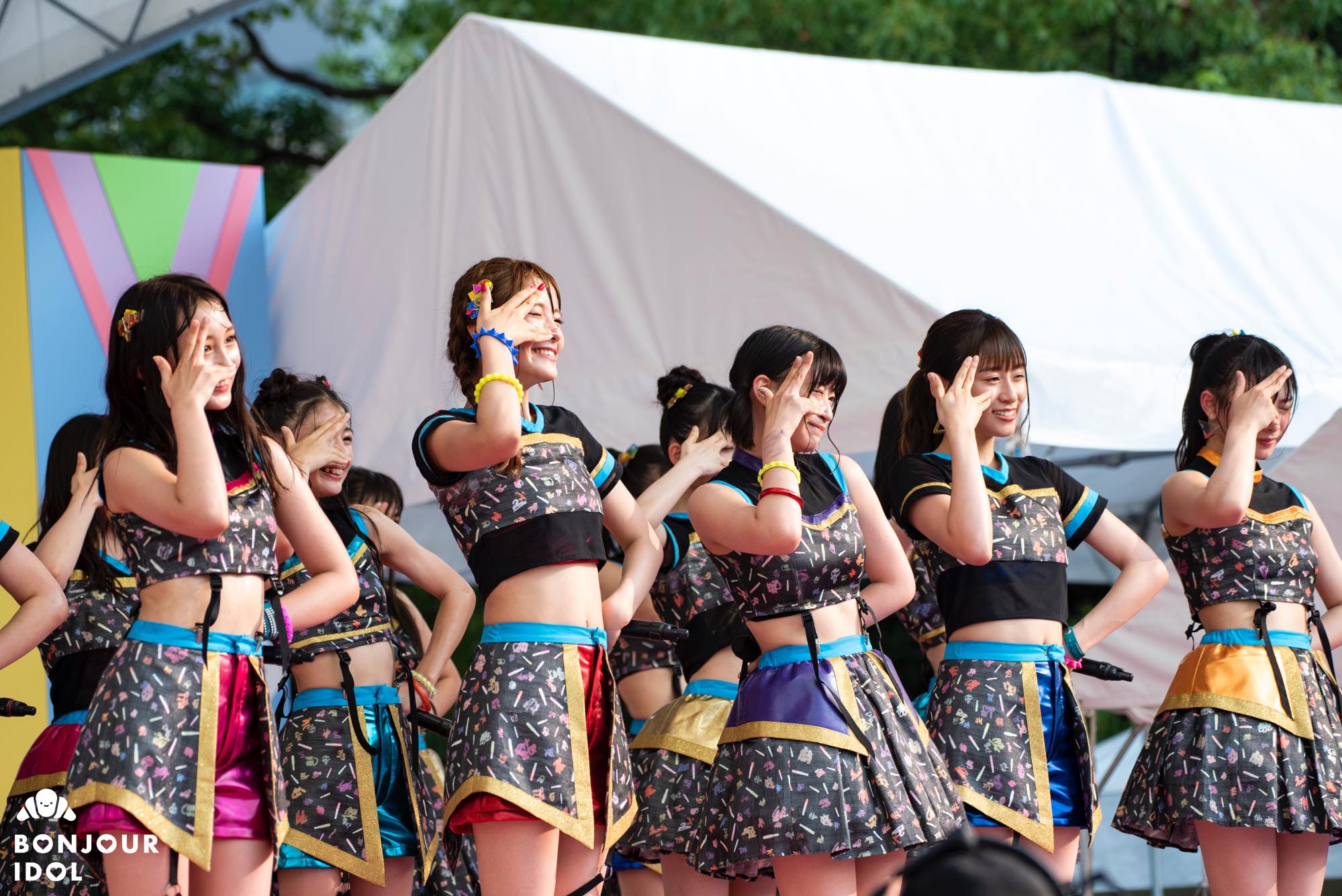 Famous among other things for their “summer bikini songs”, NMB48 had to live up to their reputation for the biggest Japanese idol festival in the world, as they performed “Bokura no Eureka” and “Durian Shonen”! Older tracks such as “Seishun no Laptime” or “Nagiichi” also appeared on the setlist, which ended in a crazy note with “Warota People”.