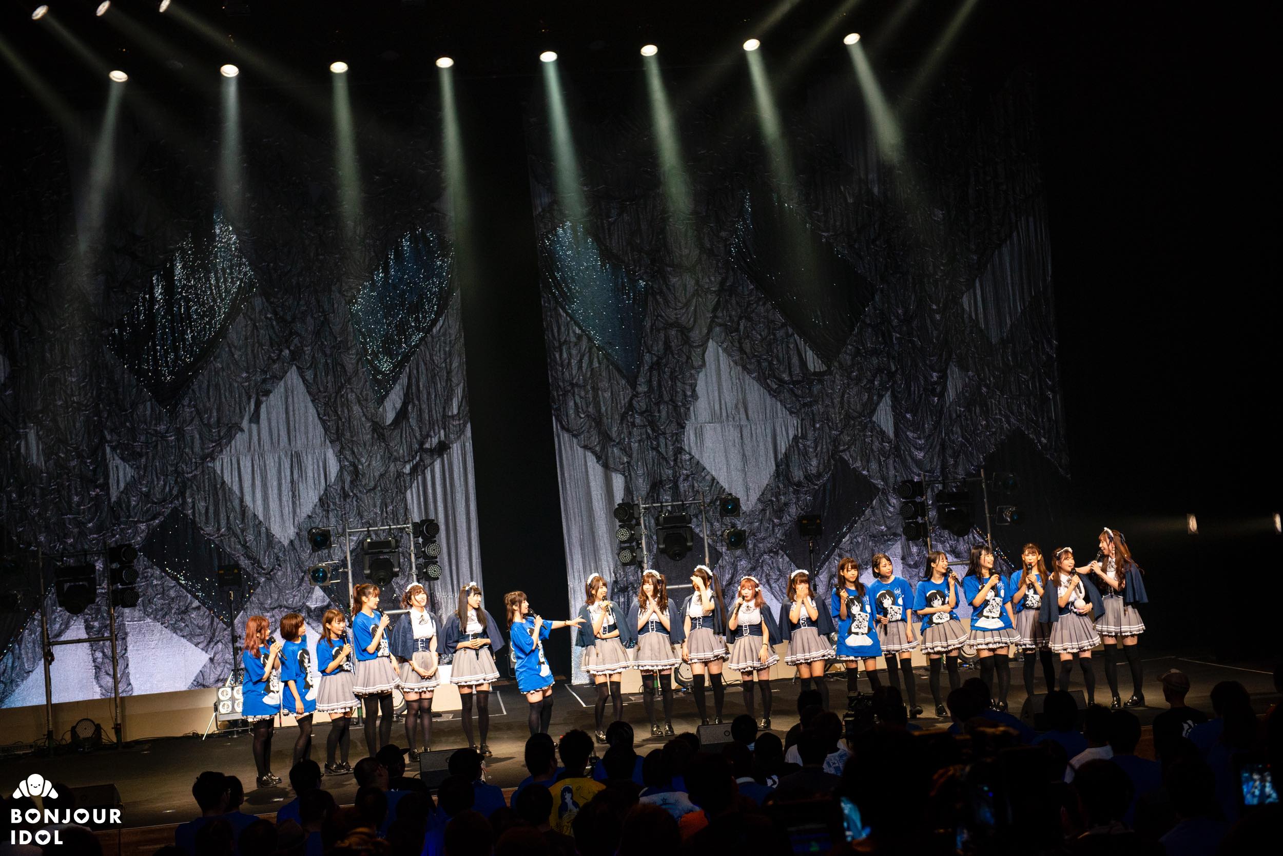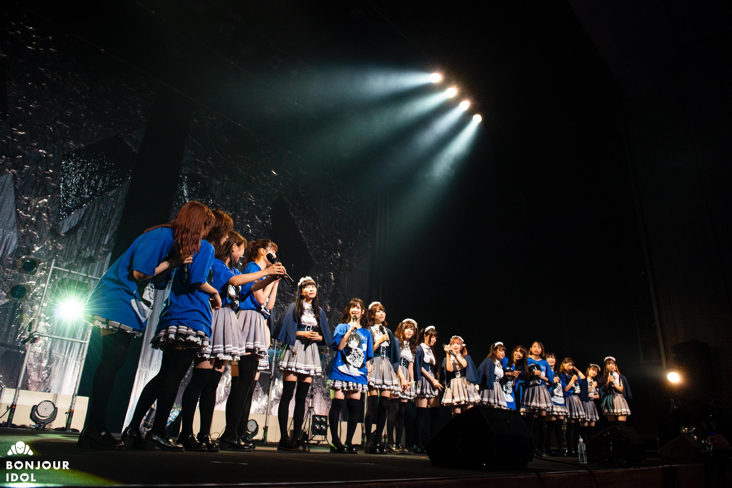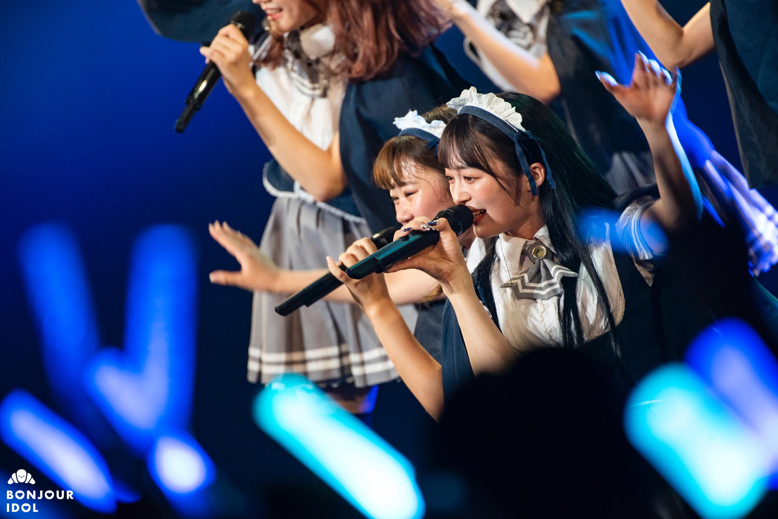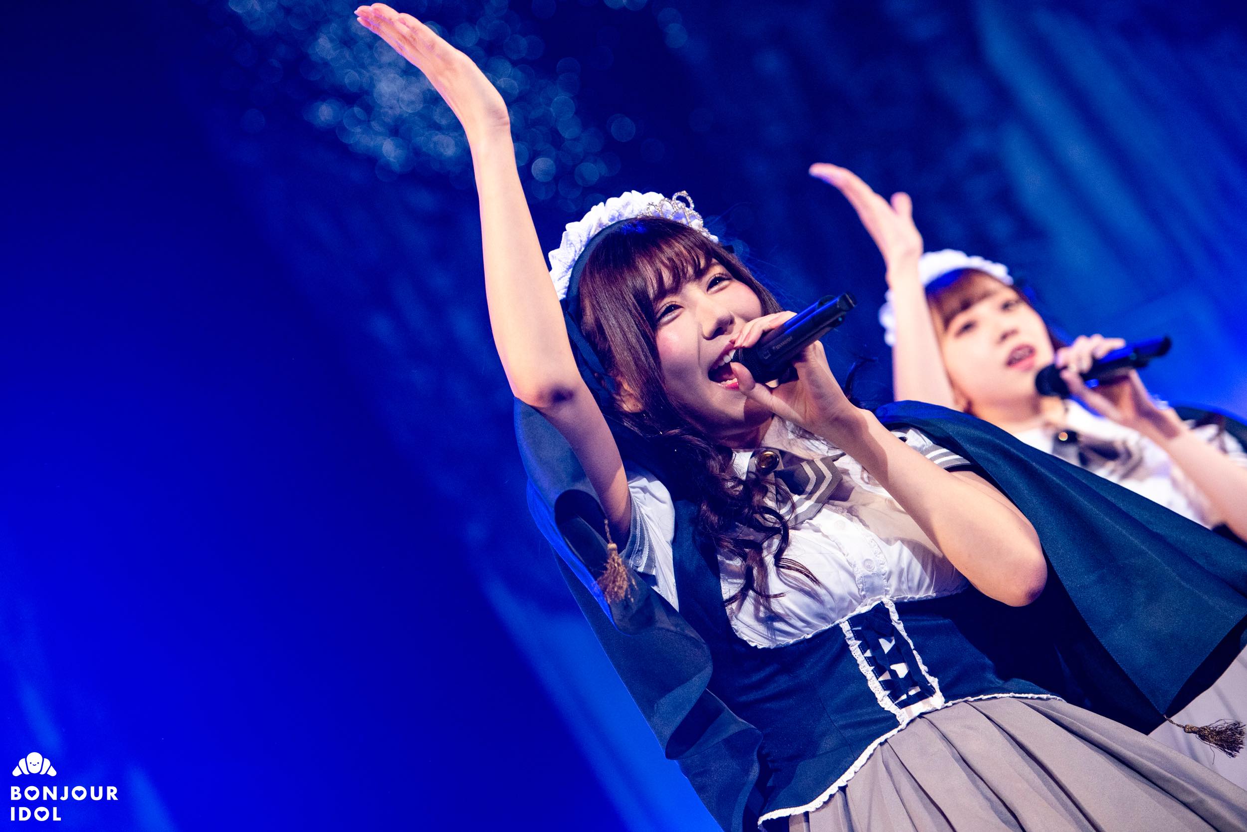 The former members then gave the stage back to their juniors of Junjou no Afilia, and the concert found itself back on a more usual track, lining up songs at an impressive rate. “Mahou no Chocolate Densetsu”, “JUICY☆GIRL”, until the newest “Junjou Myself” during which the members went down in the audience to greet their fans from up close and “Suki wa Muteki”, created a marathon of crazy upbeat and catchy tracks that turned the entire theater in a giant party as the colorful laser lights were scanning the fans. We also were able to spot the younger members of Iketeru Hearts strongly shaking blue glowsticks, screaming their senior’s name (and their producer’s, former Afilia Saga member Yukafin) for her final performance.