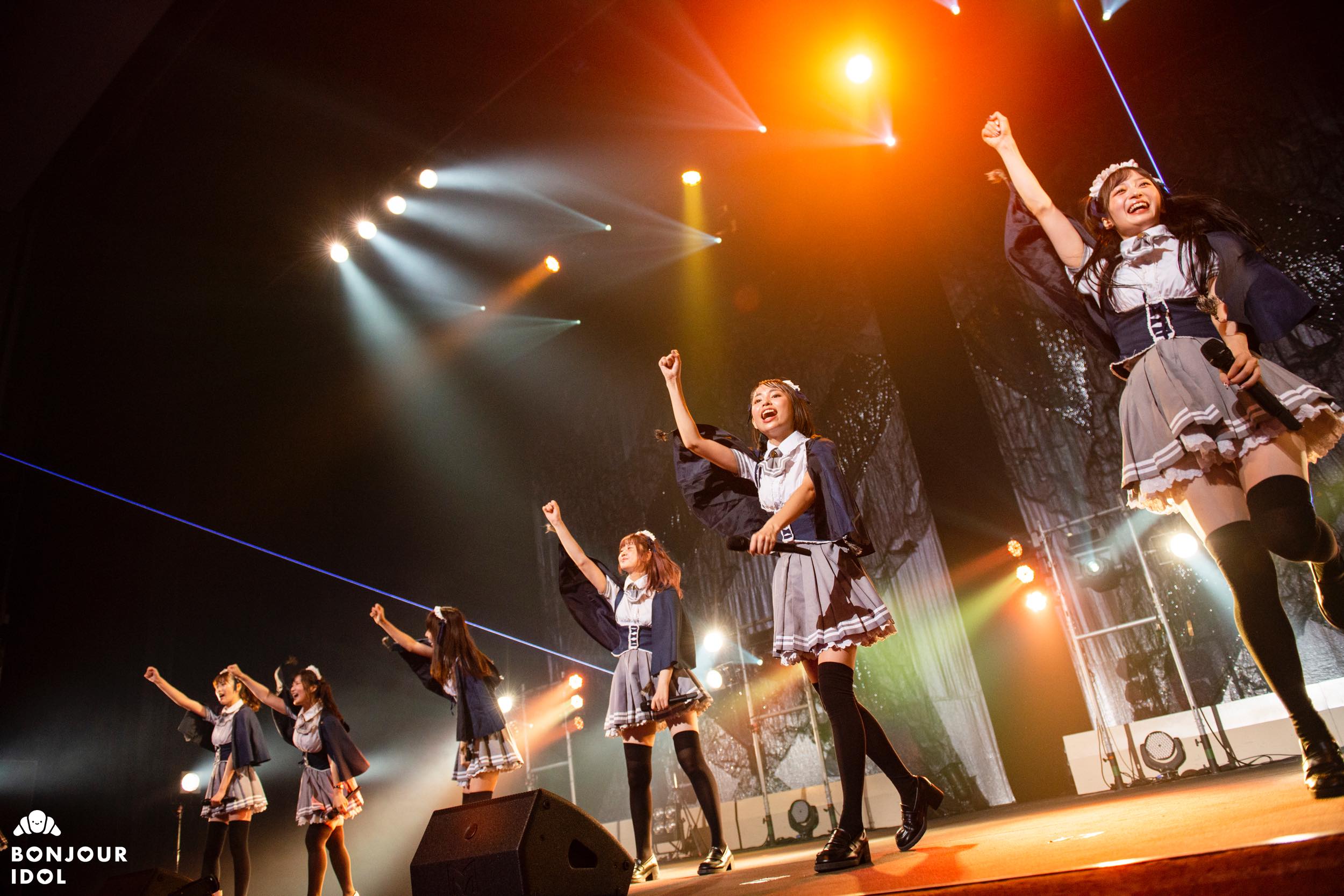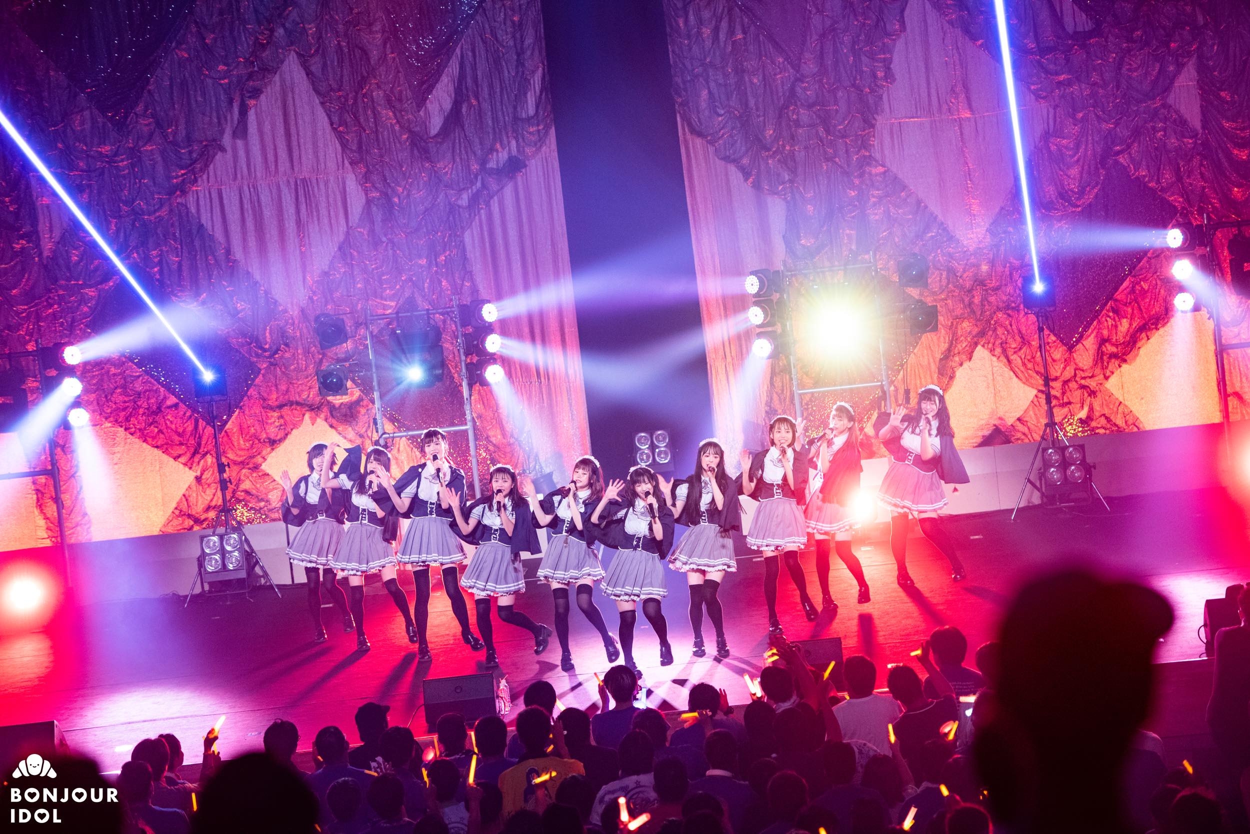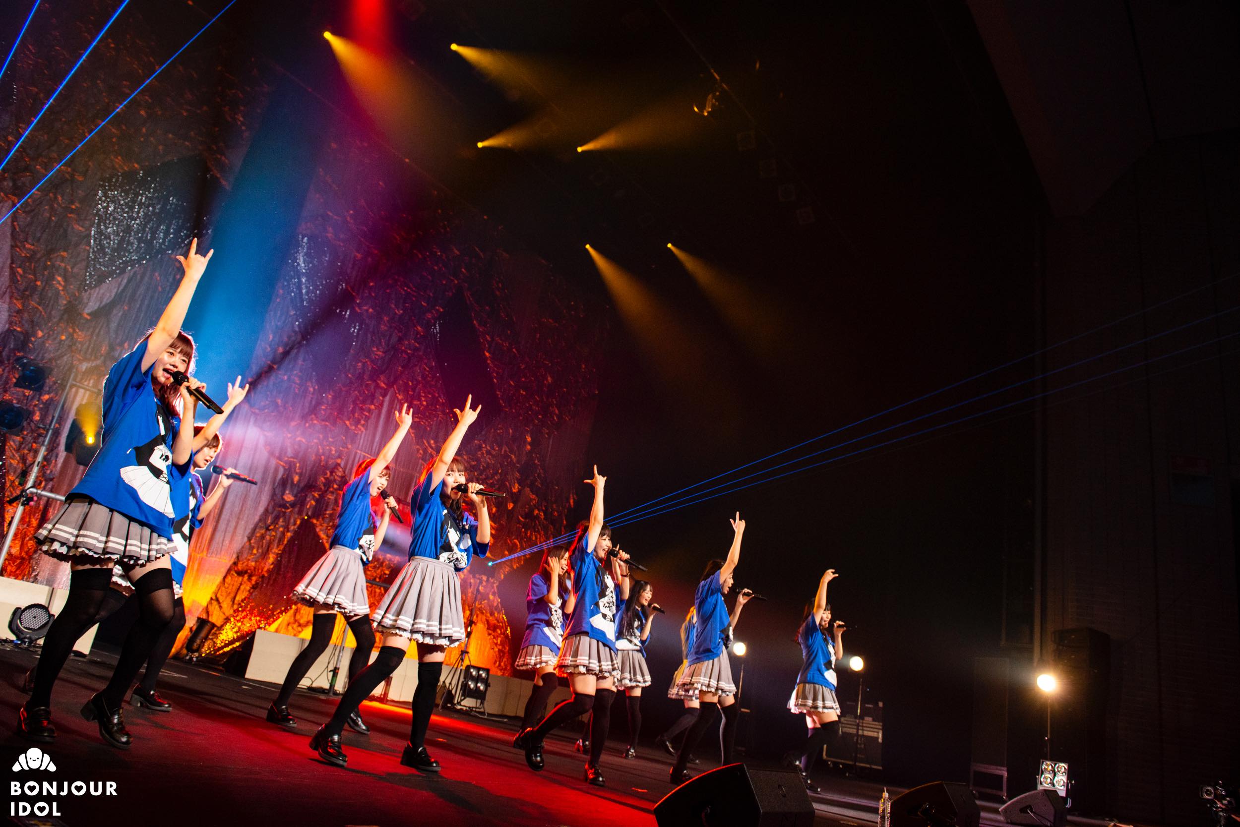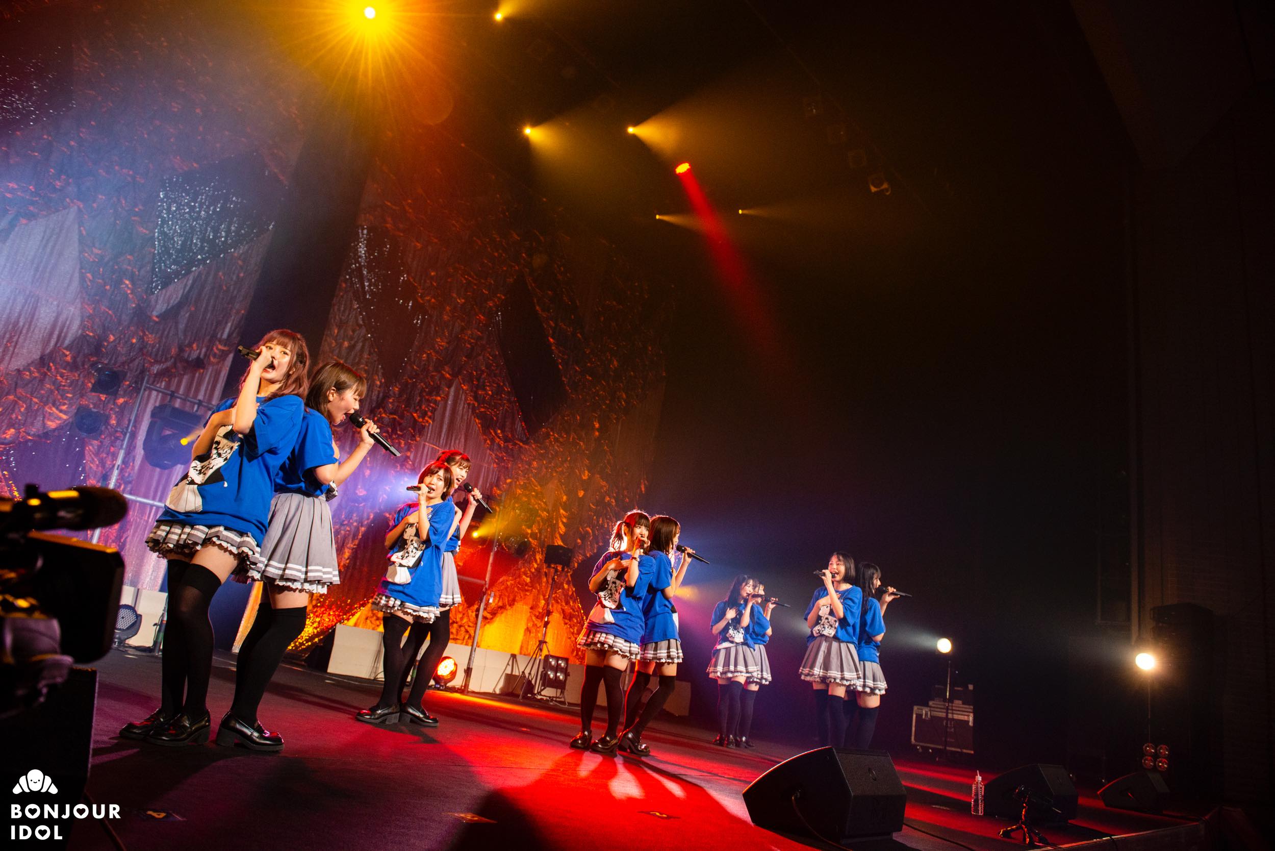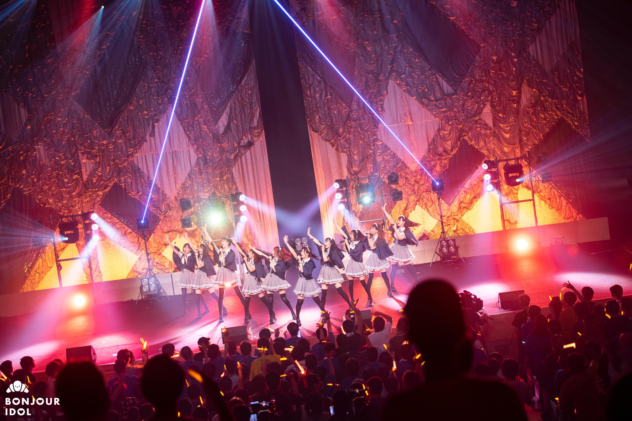 The former members then gave the stage back to their juniors of Junjou no Afilia, and the concert found itself back on a more usual track, lining up songs at an impressive rate. “Mahou no Chocolate Densetsu”, “JUICY☆GIRL”, until the newest “Junjou Myself” during which the members went down in the audience to greet their fans from up close and “Suki wa Muteki”, created a marathon of crazy upbeat and catchy tracks that turned the entire theater in a giant party as the colorful laser lights were scanning the fans. We also were able to spot the younger members of Iketeru Hearts strongly shaking blue glowsticks, screaming their senior’s name (and their producer’s, former Afilia Saga member Yukafin) for her final performance.