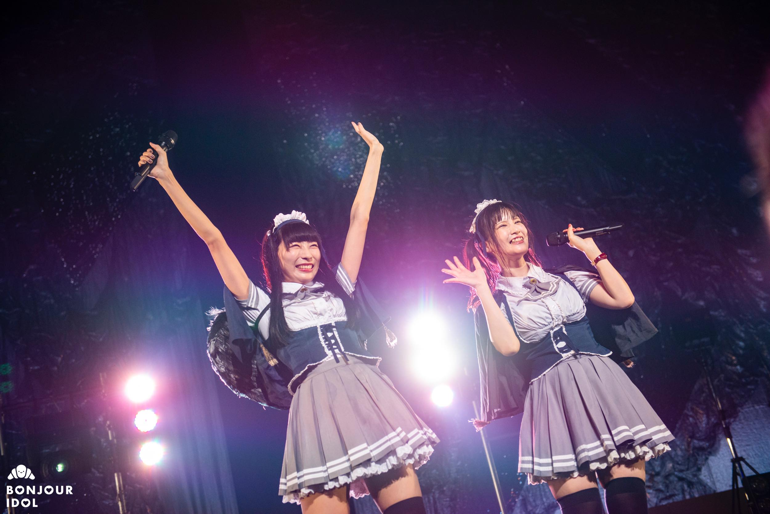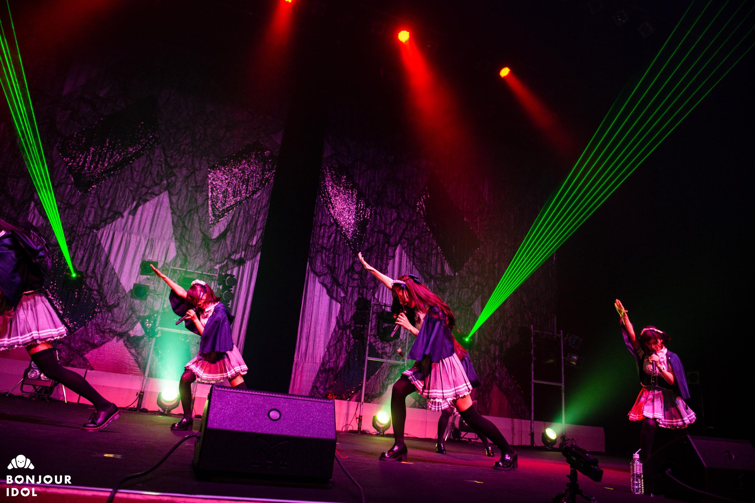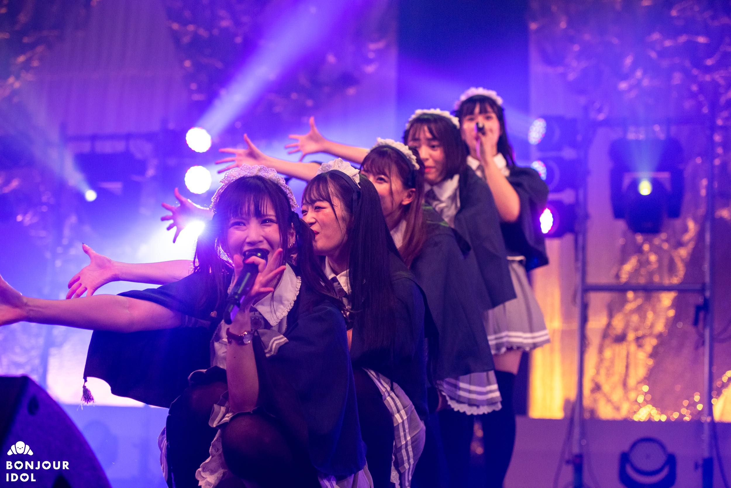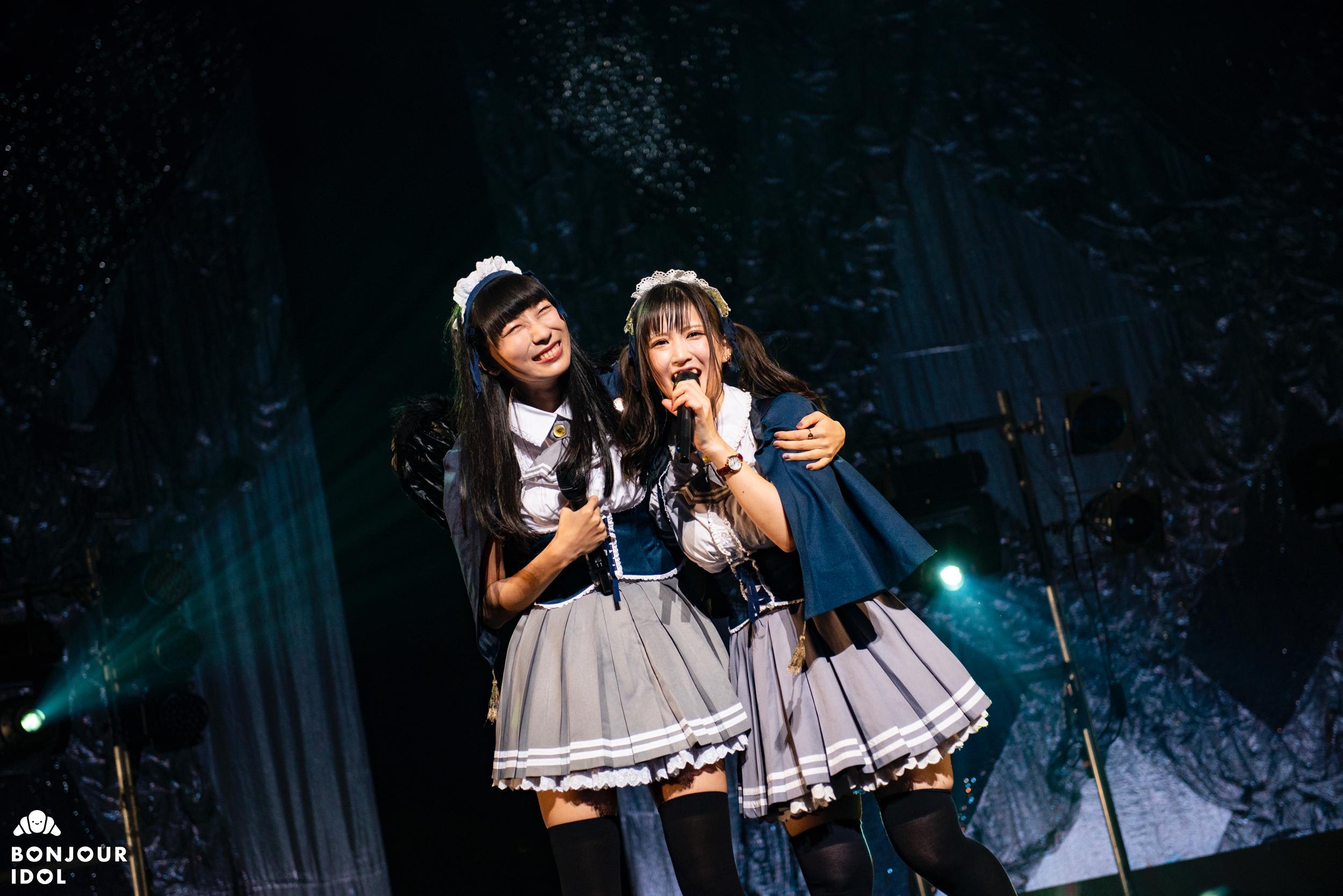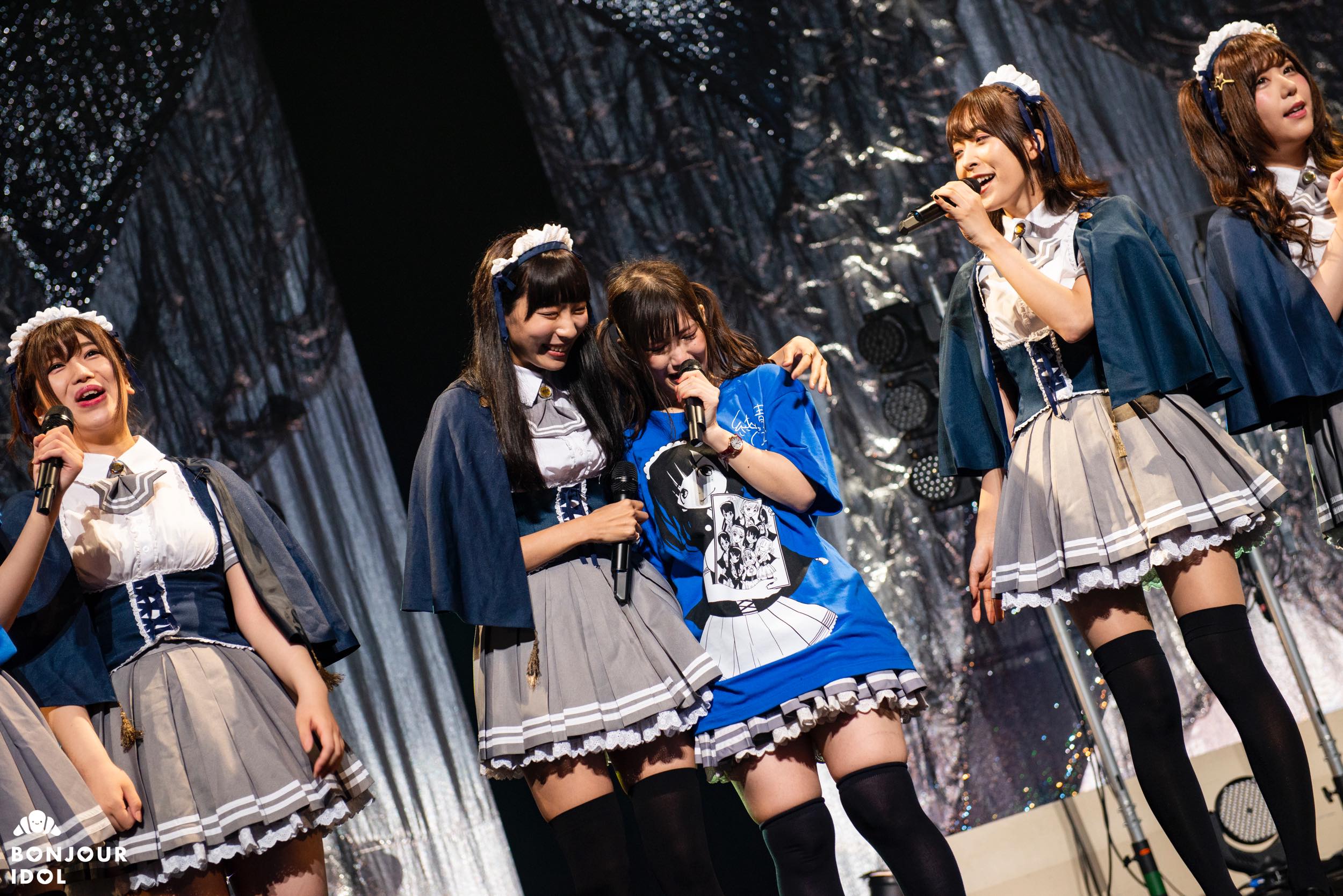 The following segment was a wave of nostalgia hitting the shoreline on the audience, as the line-up formerly named Afilia Saga was reunited in its almost-entirety: Yukafin Doll, Nana Drop Bijou, Alice Rosen, Moe Meley, Myuna Shulita, Love Berry Jane and Louise Sforzur sneaked on stage from the audience side for “Itsuka Mita Niji no Sono Shita de” and “Lost in The Sky”, much to the delight of their older fans.