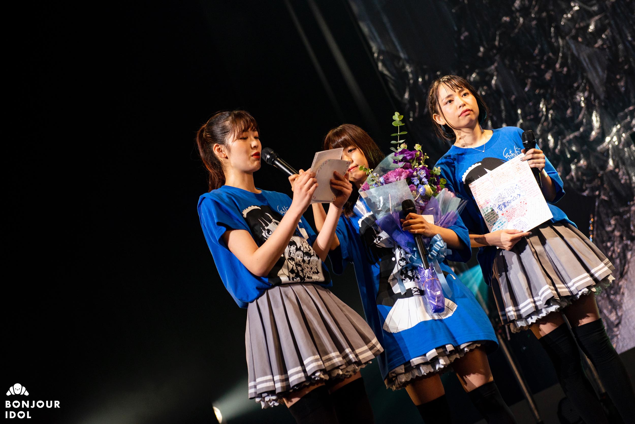 Newest songs and older classics followed and resonated with each other, and it was after tracks like “Hajimete no SEASON”, “Embrace Blade” or “Neptune☆Sagashite” that the members disappeared to only leave Maho, Kaori, Kana and Yumi on stage.