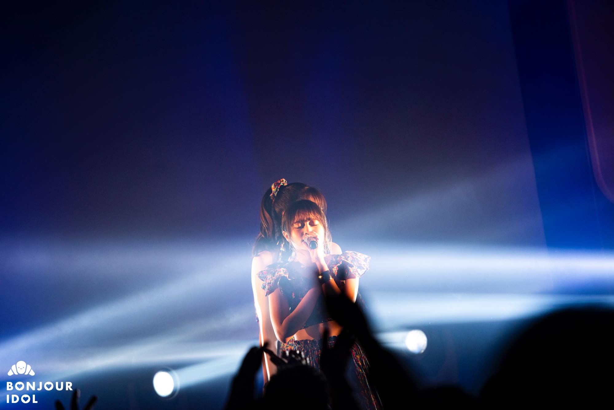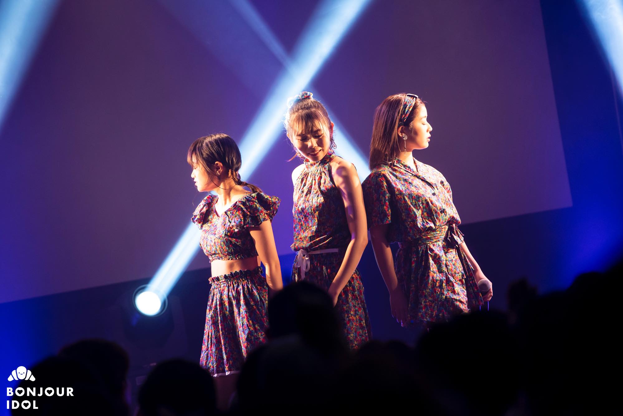 The three songs that followed plunged the room into a warm atmosphere, dipped into a sunset-like orange glowing light. The girls, sitting on high stools, performed “Beautiful Lady” backed up by its xylophone notes, and an exclusive acoustic version of “Time” with a ukulele, which was our personal favorite! Finally, it was with the throbbing rhythms of “sora” that the sun finally set, leading us back to a more regular concert after a small break.