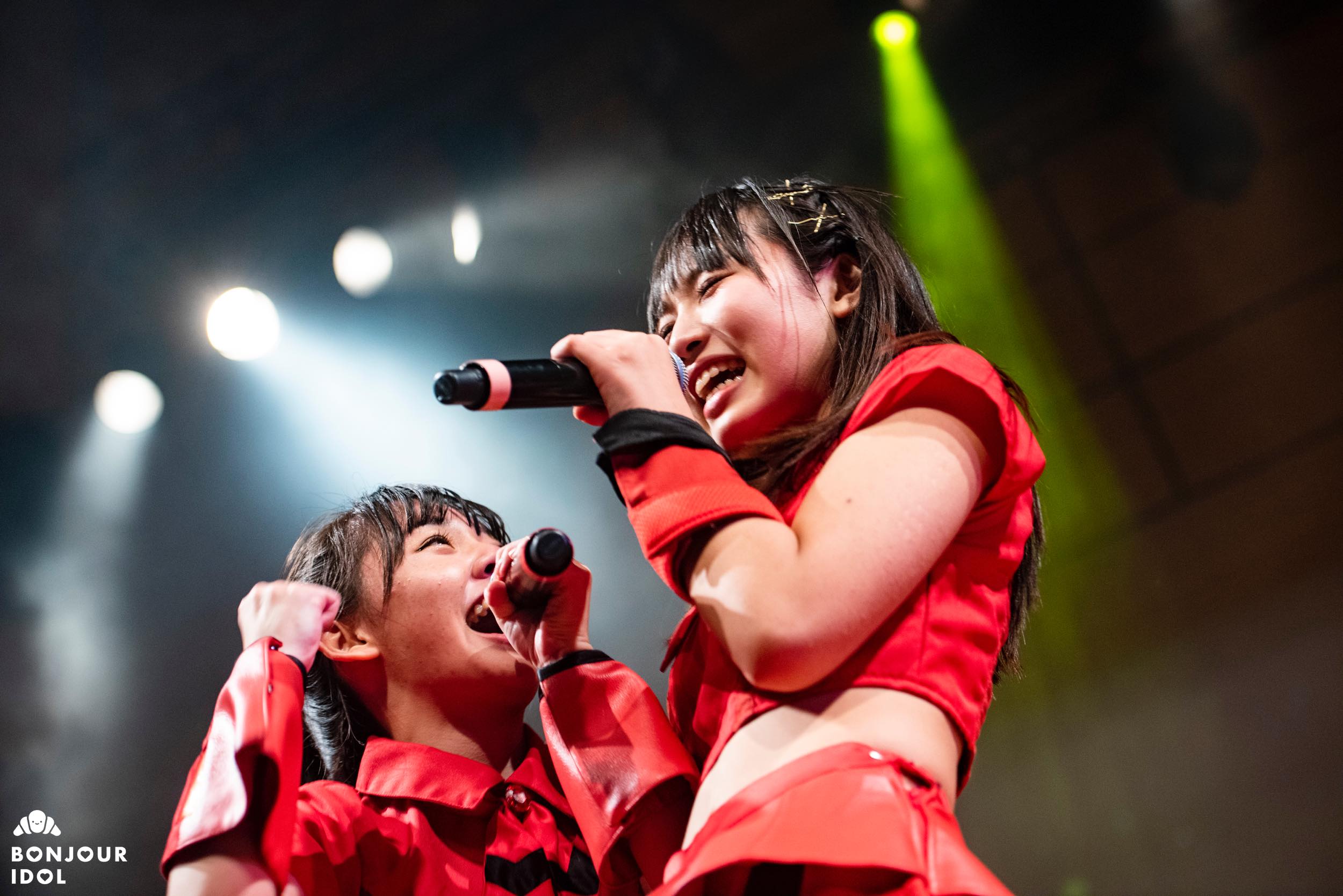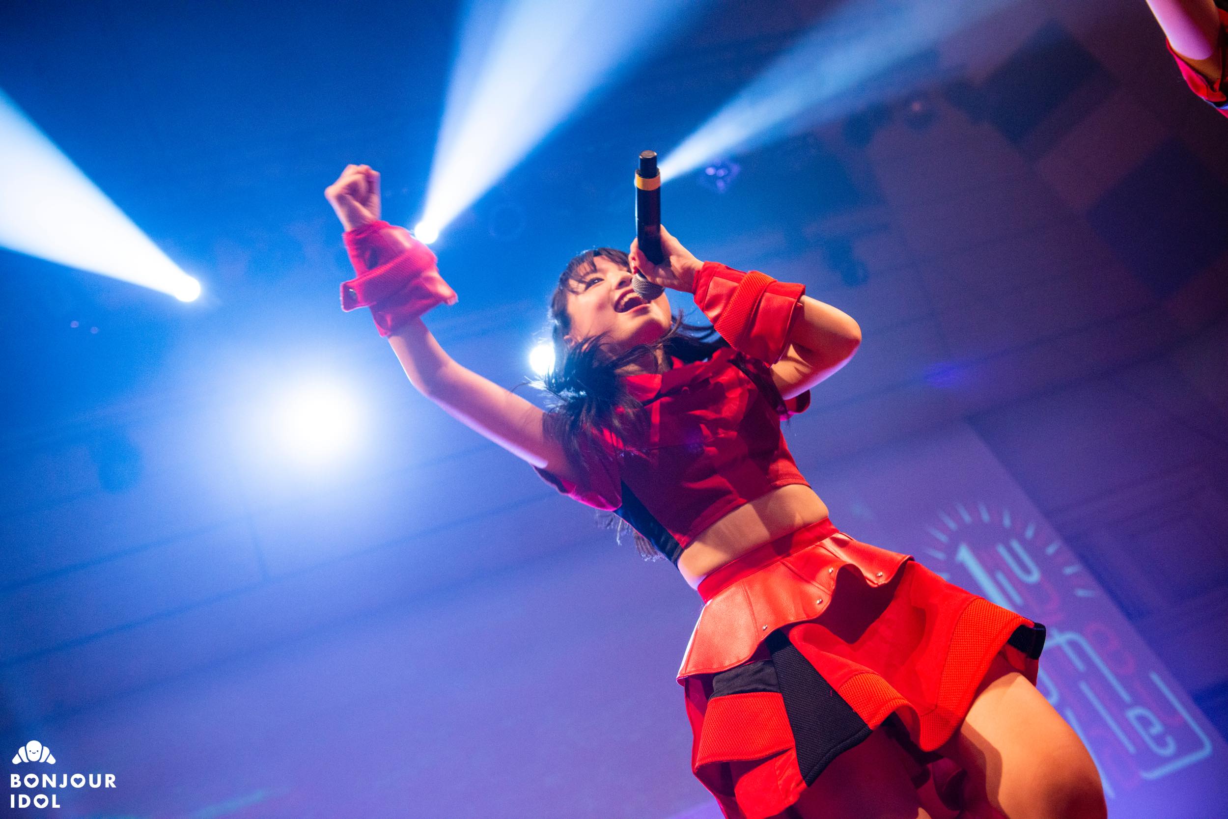 After a fired-up first part, the members took a break for a first MC, in which Miyamaru Kurumi pointed out that one year had passed between their first performance on October 14th, 2018 and the present day. The members took this opportunity to talk about their best memories from this first year. Natsume Saria talked about how happy she was to be able to stand on the stages of Tokyo Idol Festival 2019 and to be able to talk to the members of =LOVE, as she is a big fan of them. As for Kurumi and Sawamura Risa, they mentioned that they were so happy to always be on the road for idol activities to sing their original songs. As for Onodera Misa, she expressed her gratitude about getting to stand on the main stage of idol festival @JAM, along with former Babyraids JAPAN’s Takami Nao. Nishimura Tsukino made the audience laugh when she mostly talked about her trips to Disneyland, in a hilarious contrast with her senior members’ serious answers.