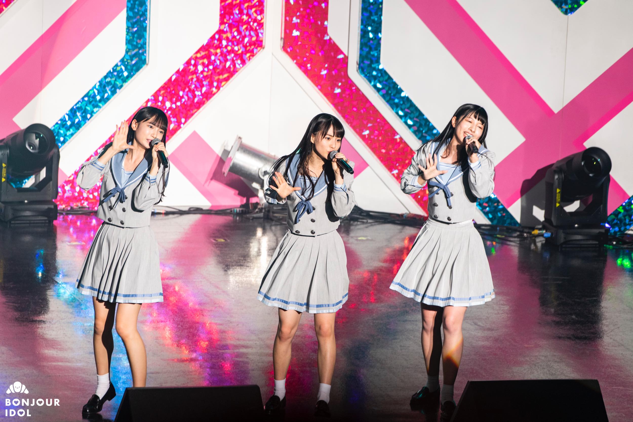 =LOVEのメンバーがステージに登場し、齊藤なぎさと齋藤樹愛羅の可愛いと強力なデュオに引っ張れて「いらない ツインテール」を披露。欅坂46感のある緑と黒チェック柄の新衣装のメンバーの姿から目が離せない。「記憶のどこかで」、「今、この船に乗れ!」、「届いてLOVE YOU▽」そして「ようこそ!イコラブ沼」、元気いっぱいパフォーマンスが次々。会場も熱心なファンでいっぱいに詰めかけている。