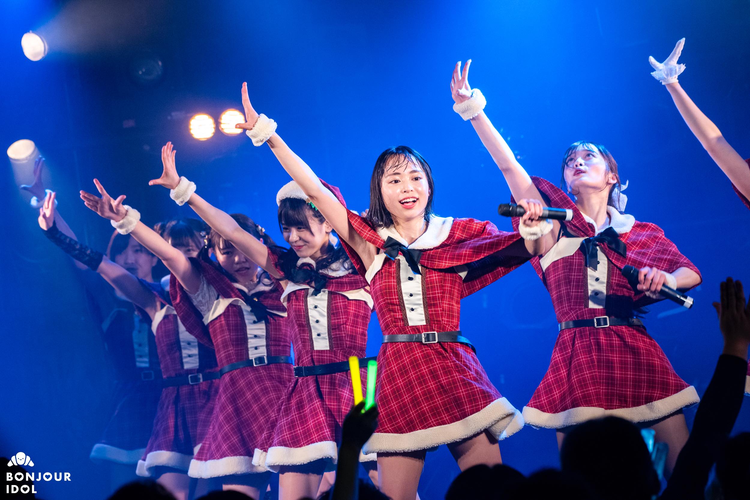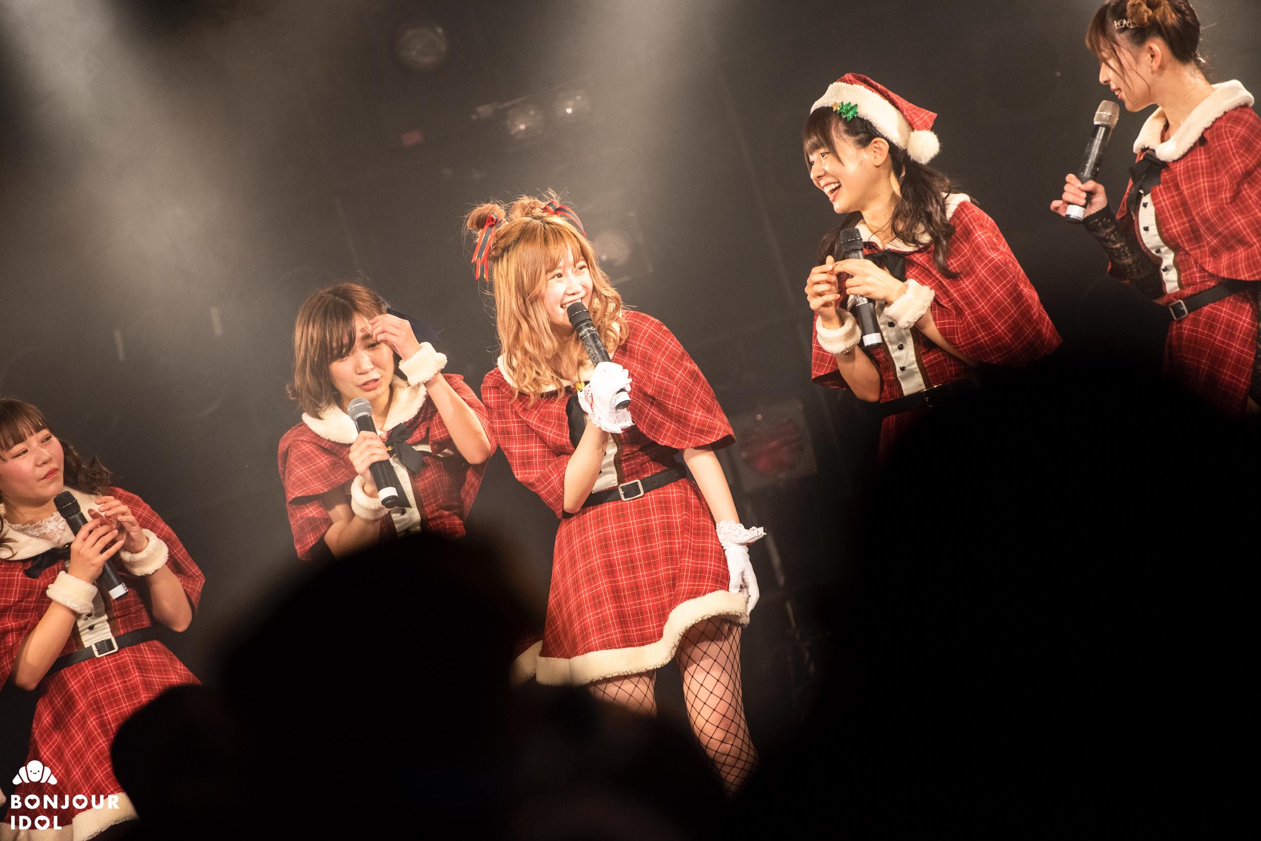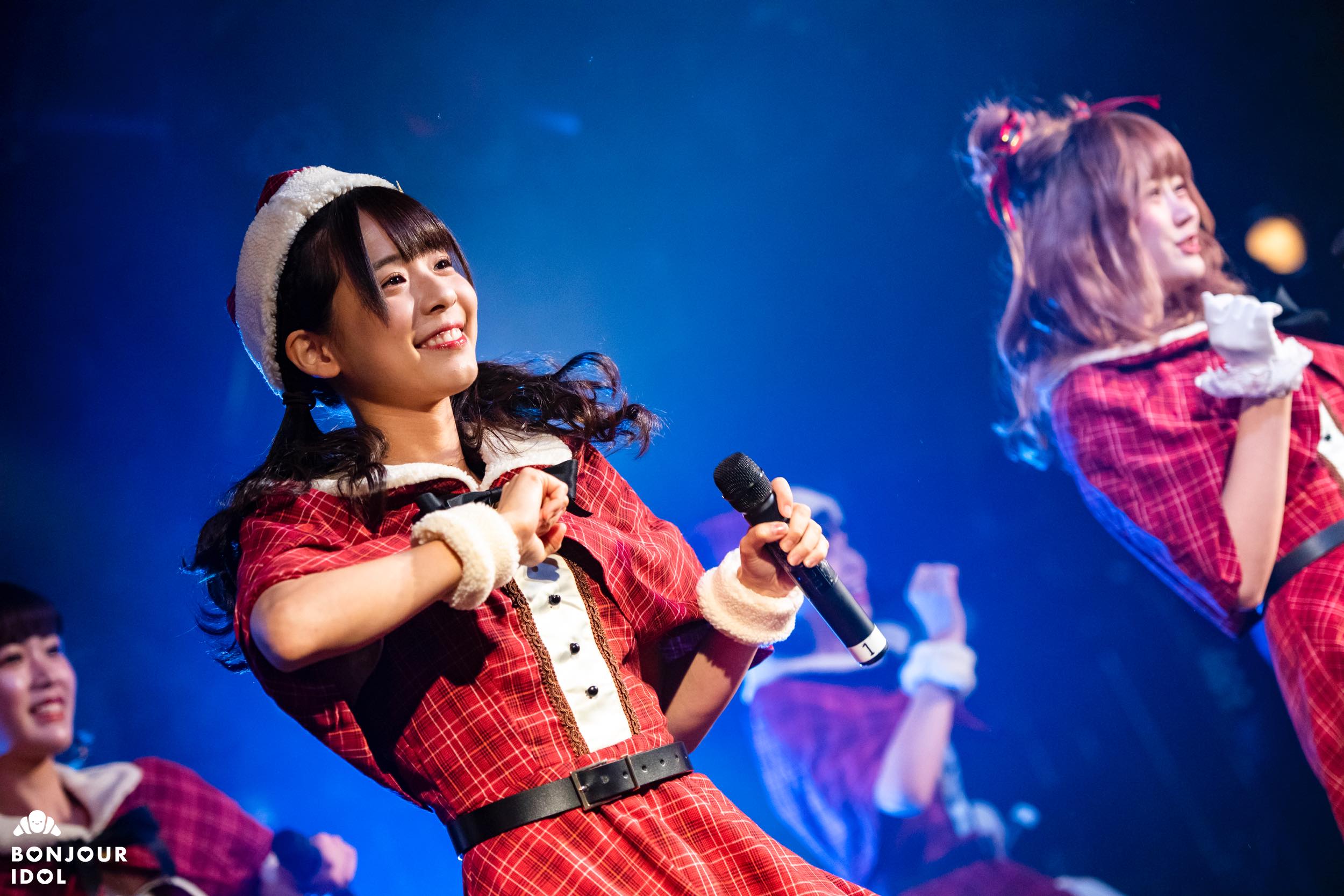 After much anticipation, a special overture tune remixed with Christmas bells opened the concert. “Sei Naru wktk no Hoshi” started the show, and it was also customized with seasonal sound effects. The members appeared wearing custom costumes all in red and white along with hats for some of them. The first MC introduced the members one by one after a loud (and early?) “MERRY CHRISTMAS!”.