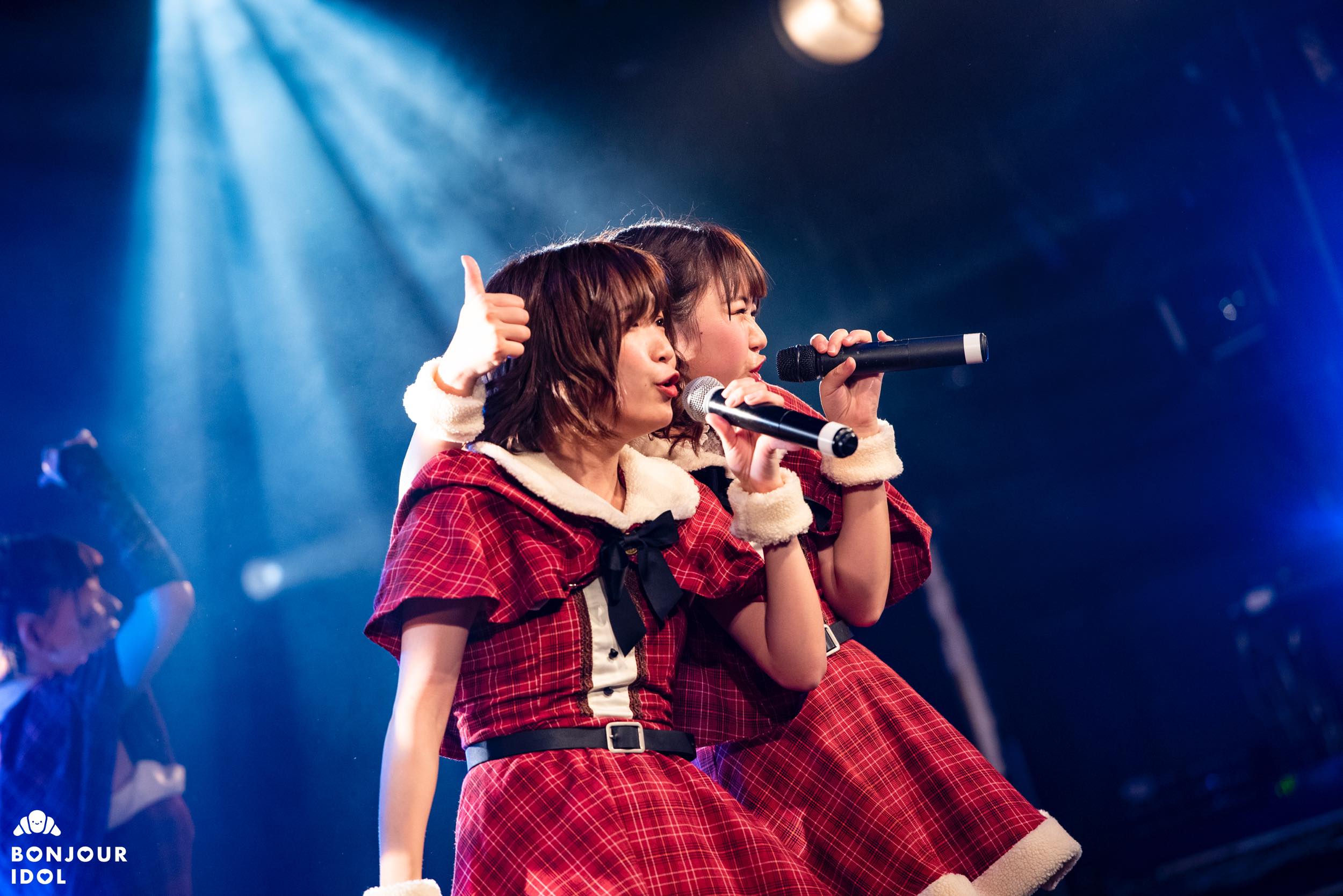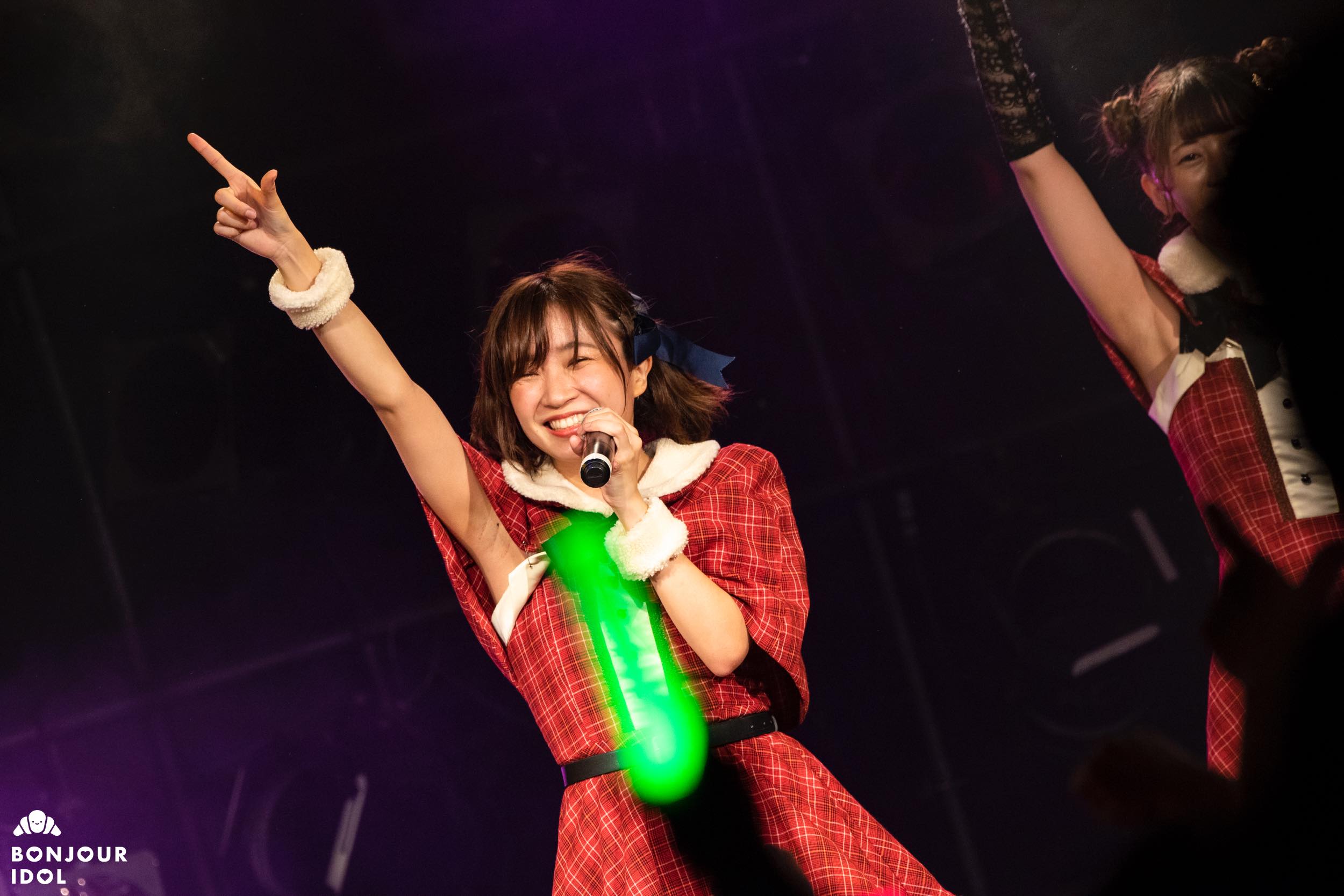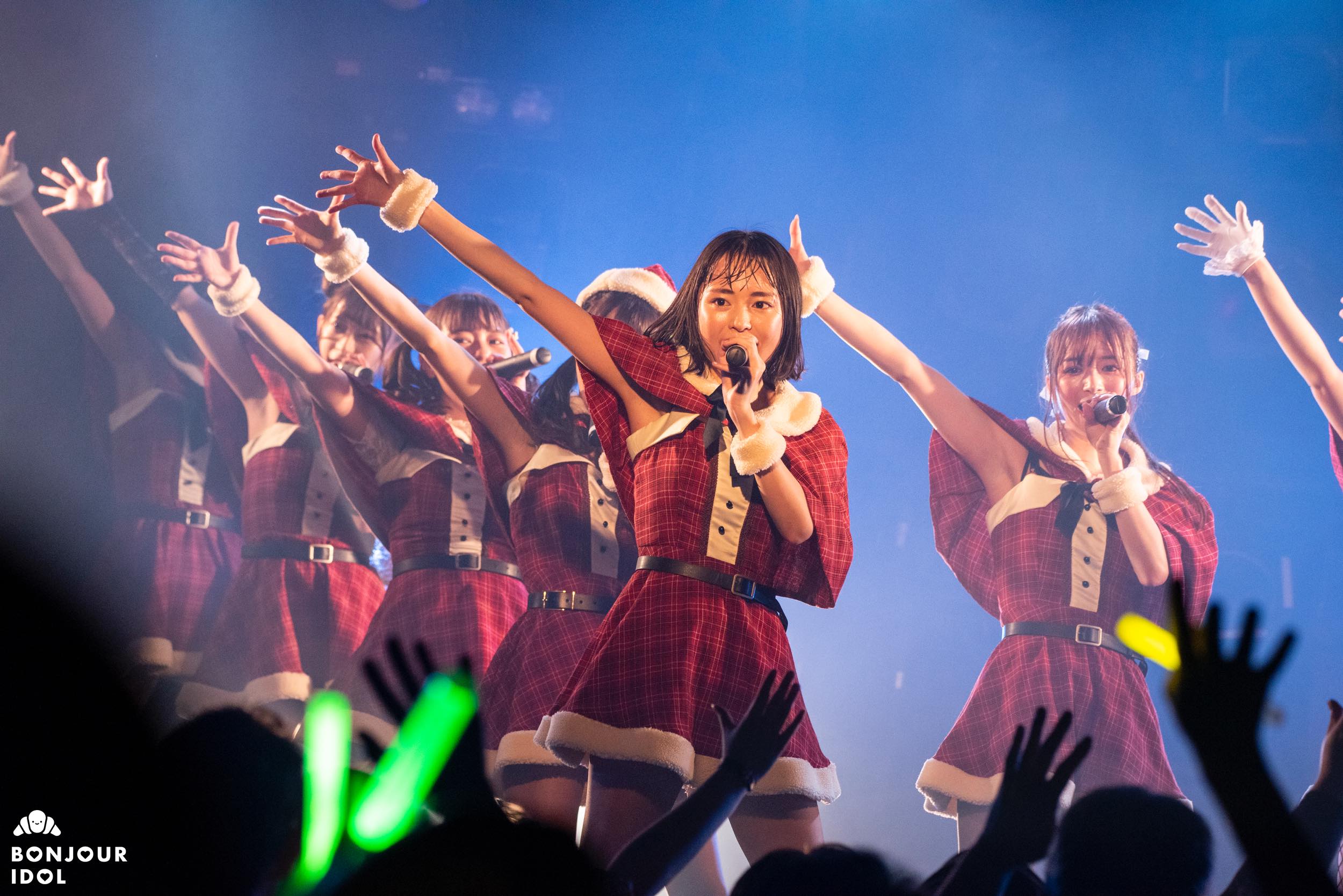 After much anticipation, a special overture tune remixed with Christmas bells opened the concert. “Sei Naru wktk no Hoshi” started the show, and it was also customized with seasonal sound effects. The members appeared wearing custom costumes all in red and white along with hats for some of them. The first MC introduced the members one by one after a loud (and early?) “MERRY CHRISTMAS!”.