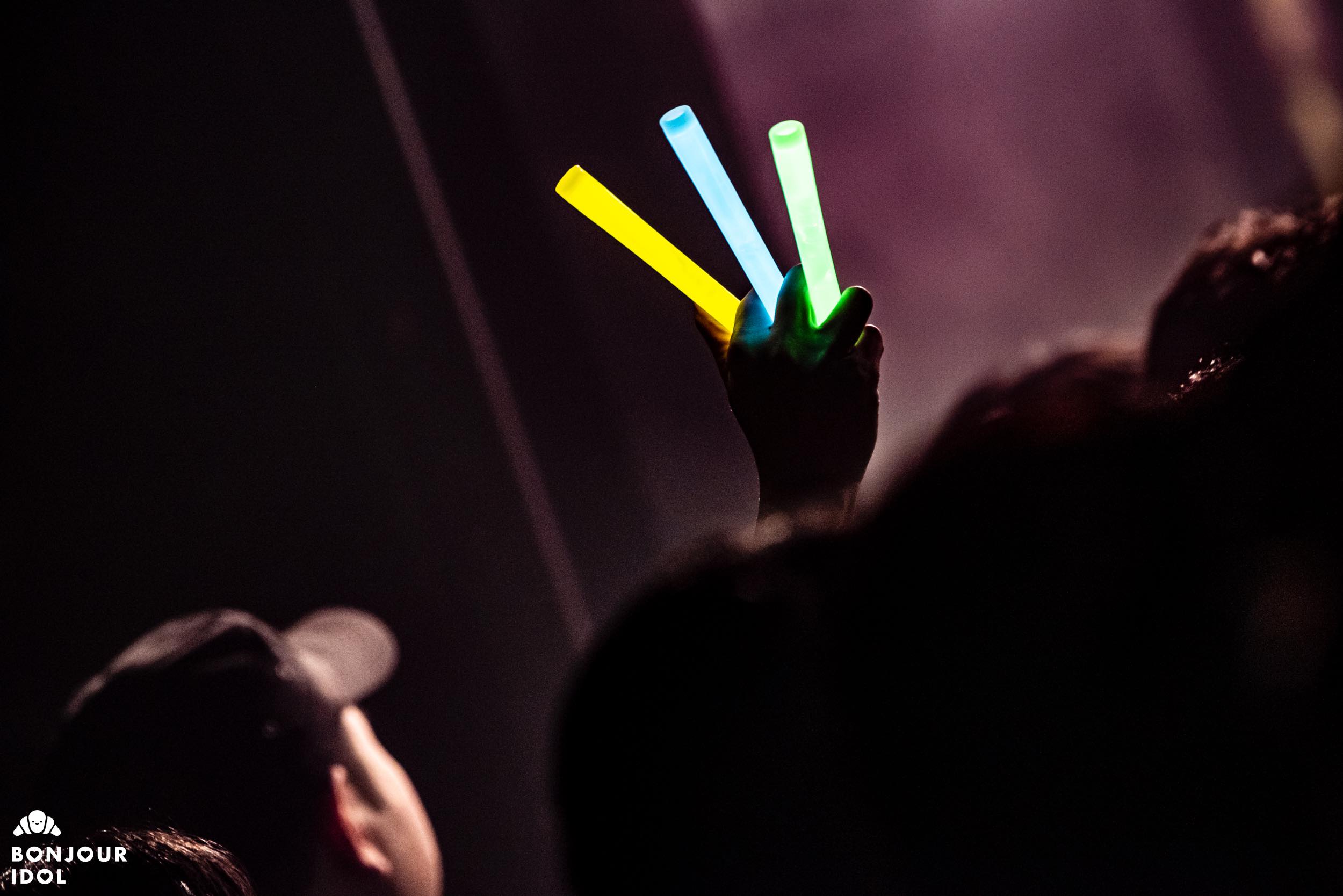 For the last MC, the members noticed that the fans had lit up glowsticks of three specific colors: yellow, blue and green. It was a tribute to Kaori, Kana and Yumi, members of the 10th generation of the group, who were celebrating their 4th anniversary as idols!