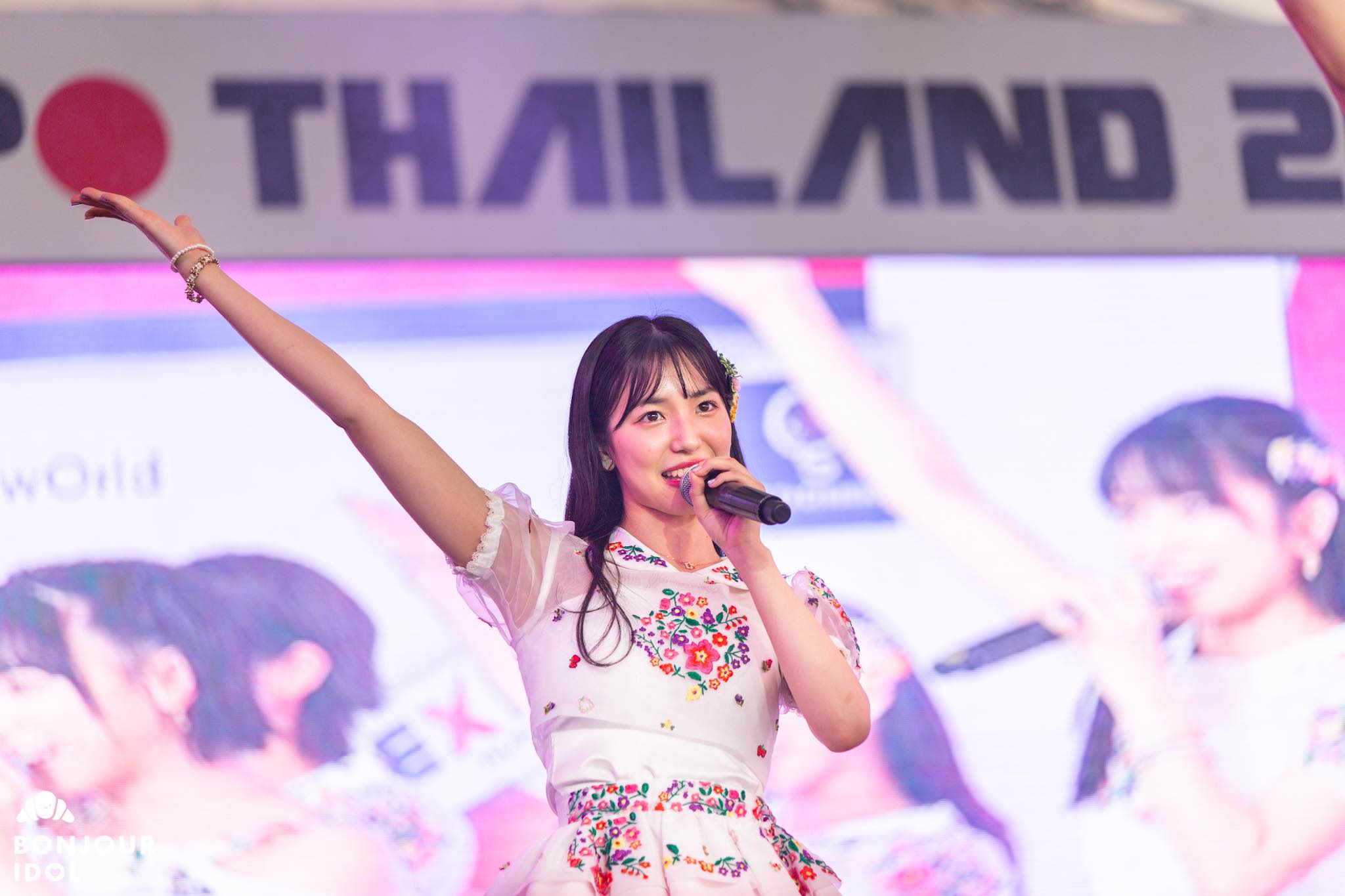 A good idol MC cannot happen without a food talk, during which Yui tells the audience that she had tasted tom yam khung, a spicy Thai specialty with shrimps. Each girl then introduced herself one by one, with a surprise for Mion! She turned 22 on January 29th and all the fans took the opportunity to wish her a happy birthday again by raising plenty of signs and messages above their heads. Yui also got caught by surprise with a giant sign with her name on it. “It’s the first time I’ve seen such a big sign with my name on it!”, she said excitedly. Congratulations to the fans! The exchange continued with the following theme… Thai food of course! What specialties did the members taste? What are the recommendations of the audience?
