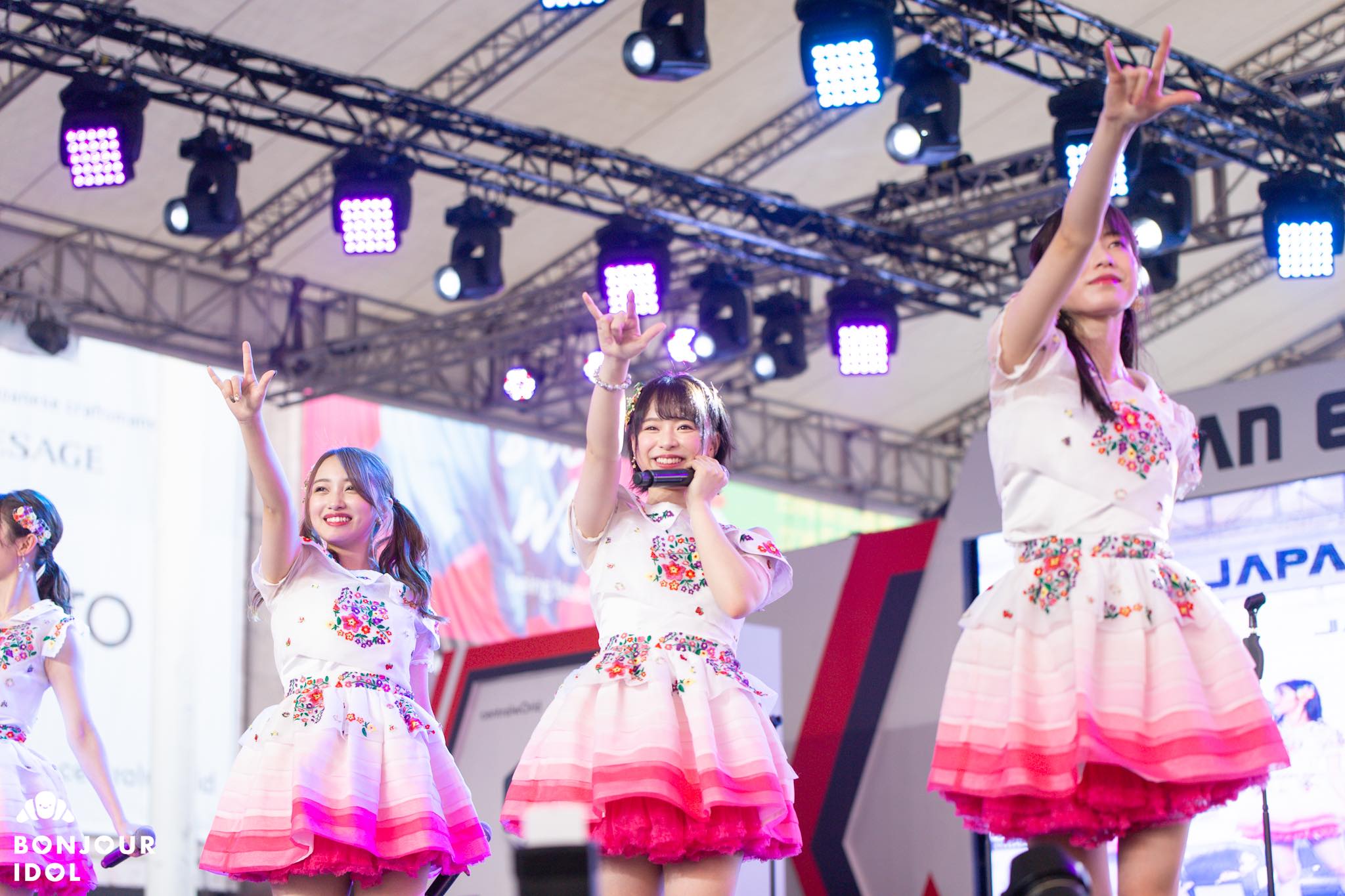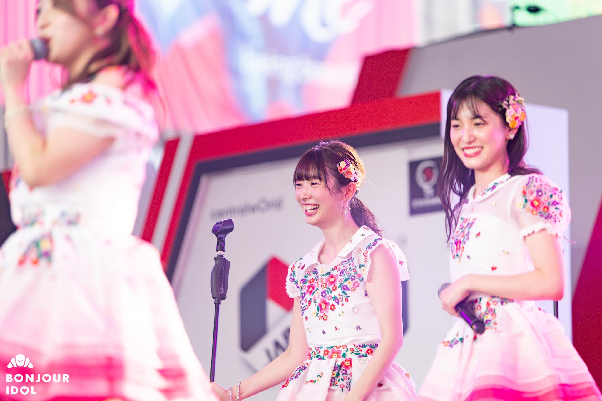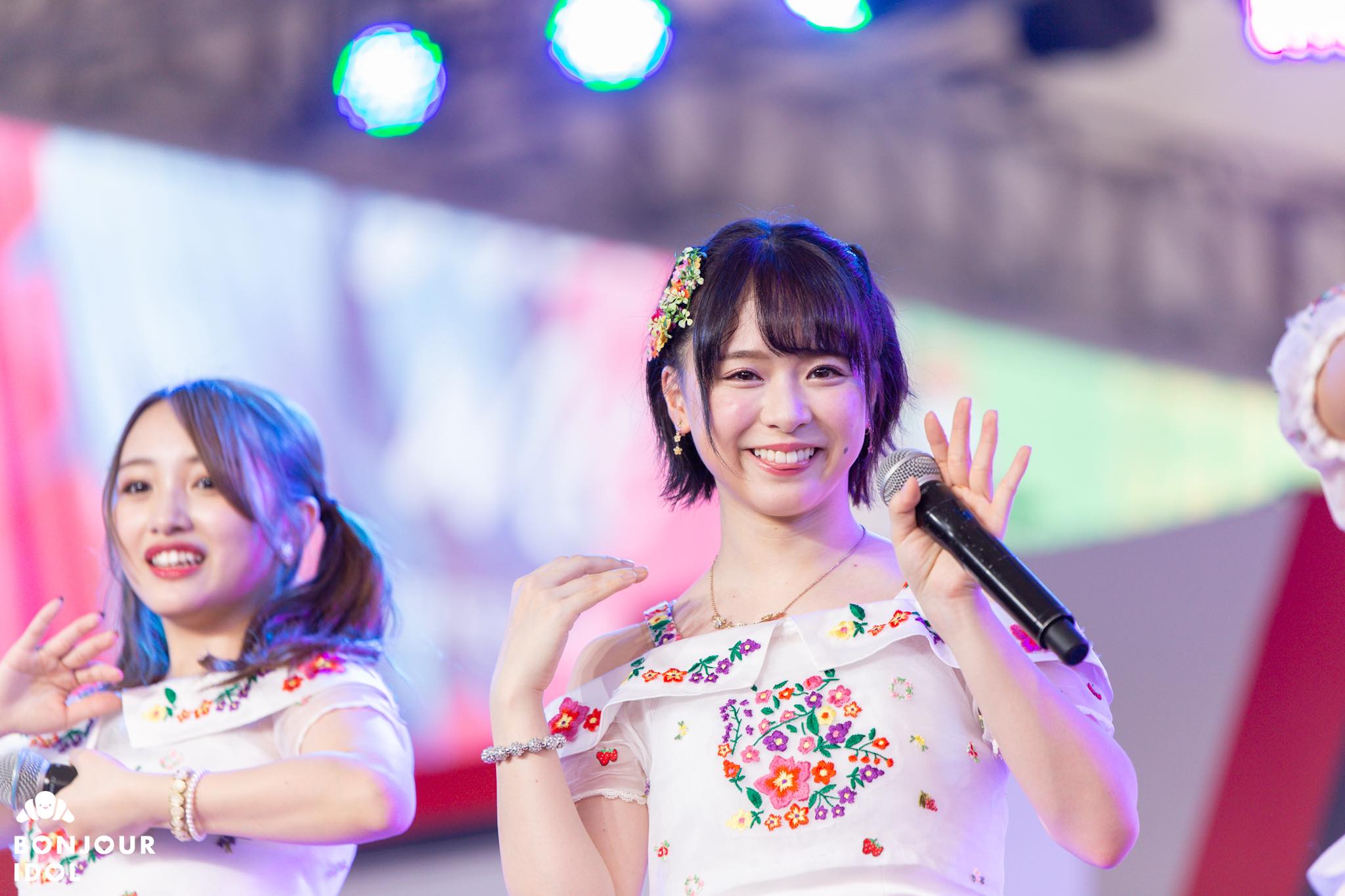 The live went on with 2 tracks, sung by 2 trios: “Heart Gata Virus” with Yui, Mion and Tomu, all 3 using cute tambourines matching their outfits. Then came Team 8’s “47 No Suteki Na Machi e” sung by its representatives, Narumi, Miu and Momoka, where the fans showed once again that they know perfectly the songs and the calls.