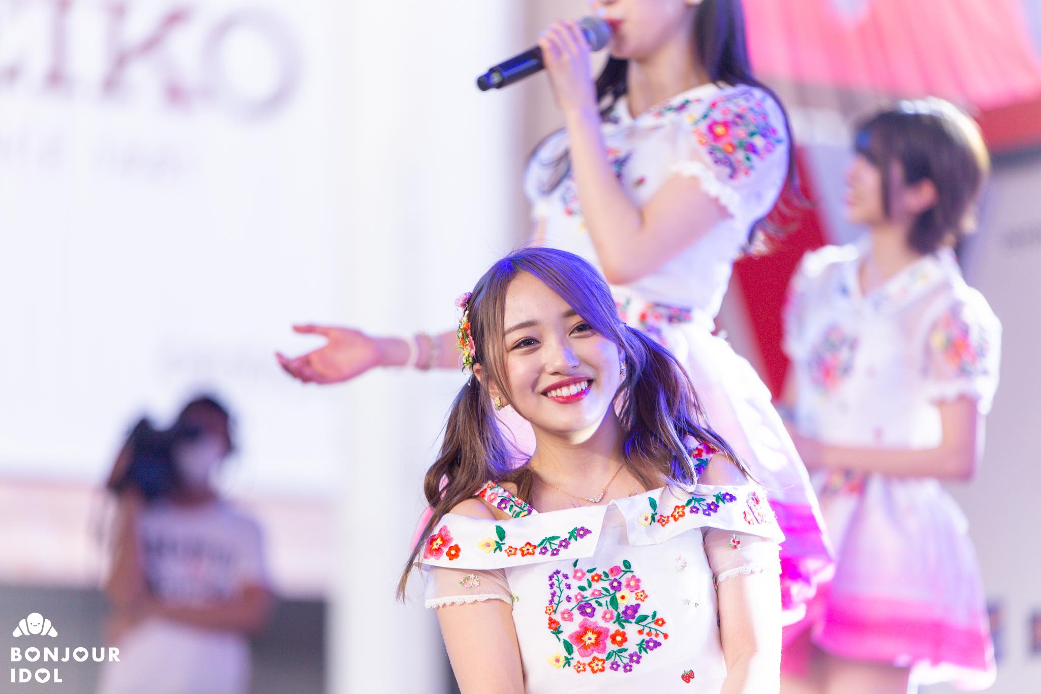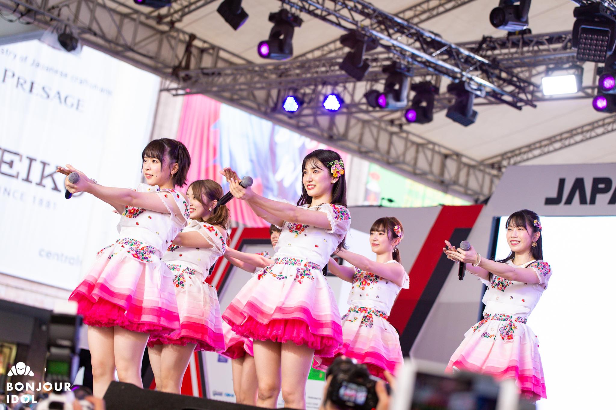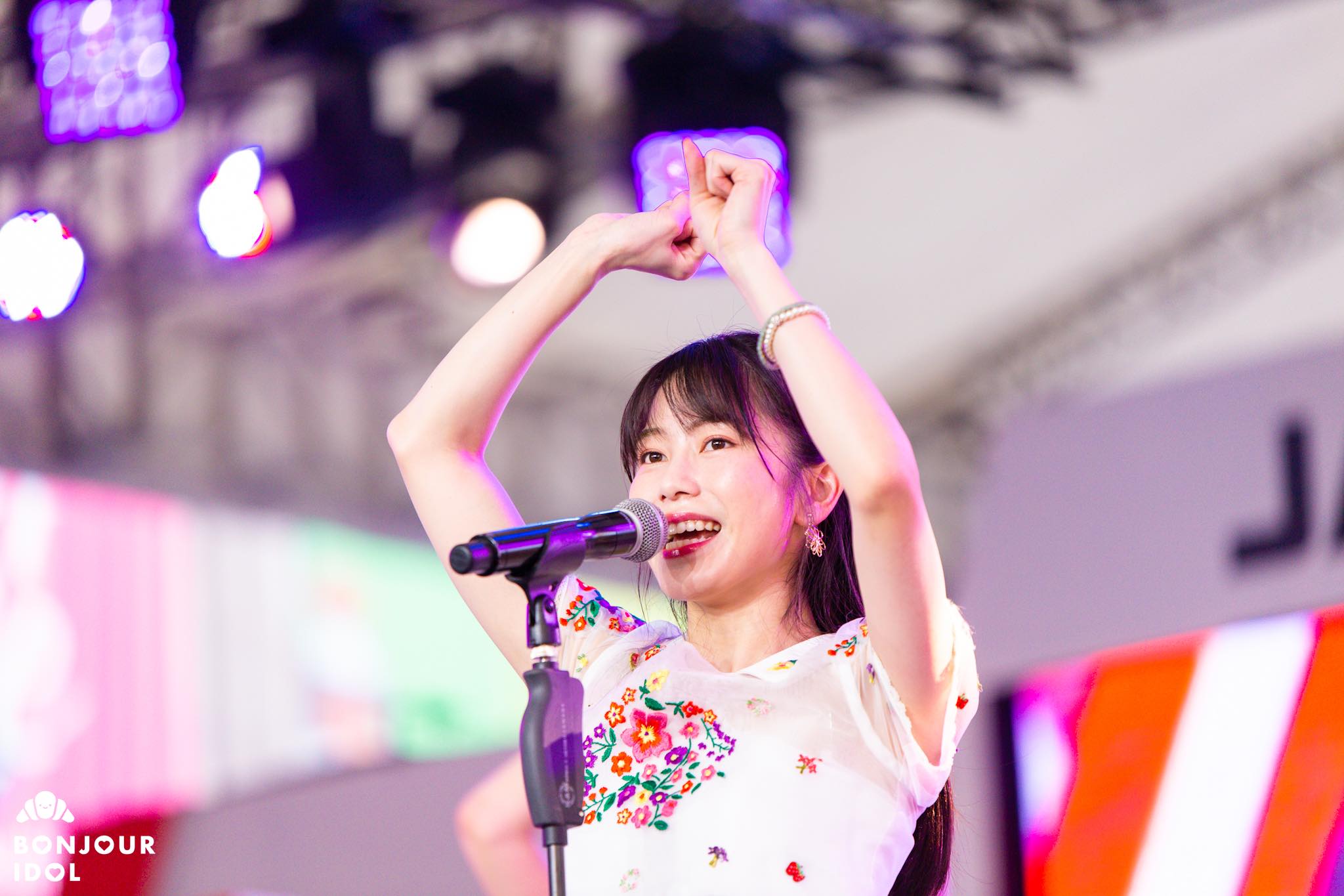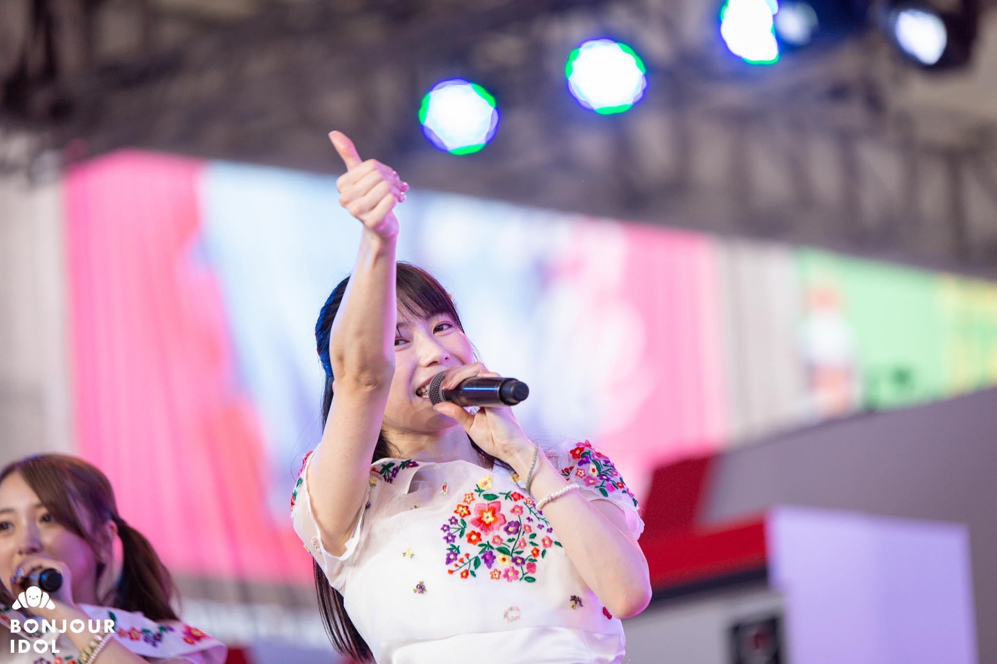 The live went on with 2 tracks, sung by 2 trios: “Heart Gata Virus” with Yui, Mion and Tomu, all 3 using cute tambourines matching their outfits. Then came Team 8’s “47 No Suteki Na Machi e” sung by its representatives, Narumi, Miu and Momoka, where the fans showed once again that they know perfectly the songs and the calls.