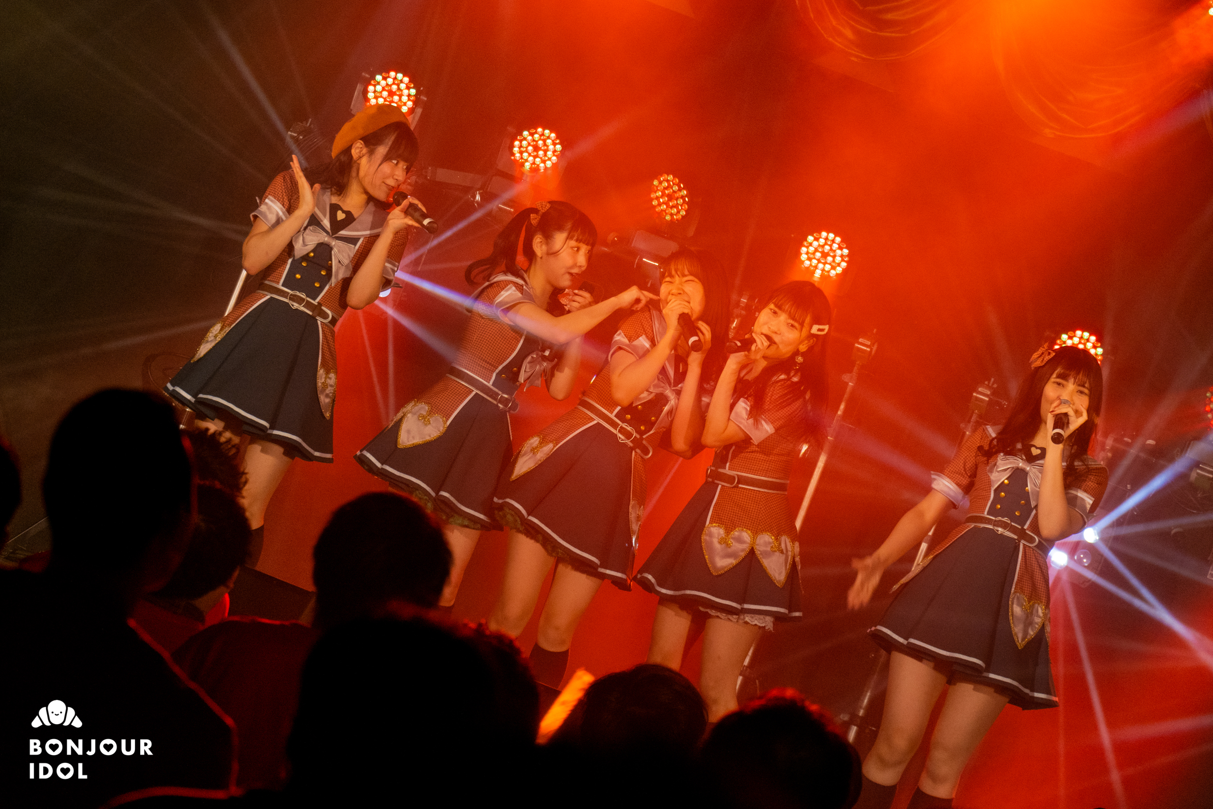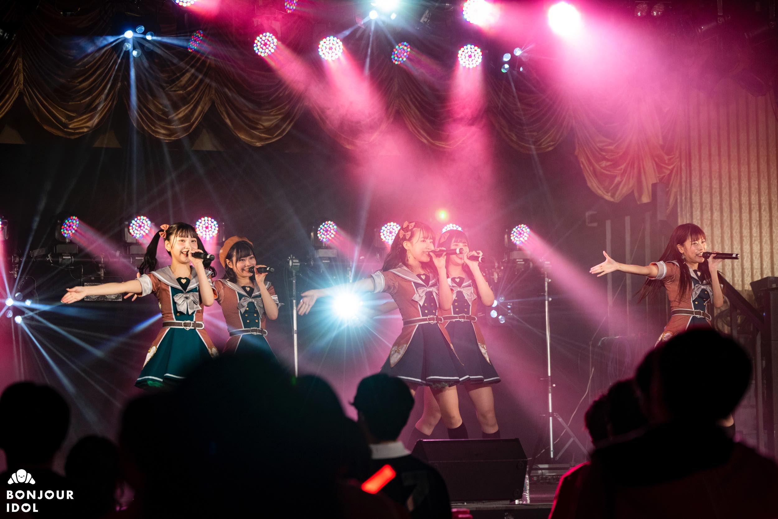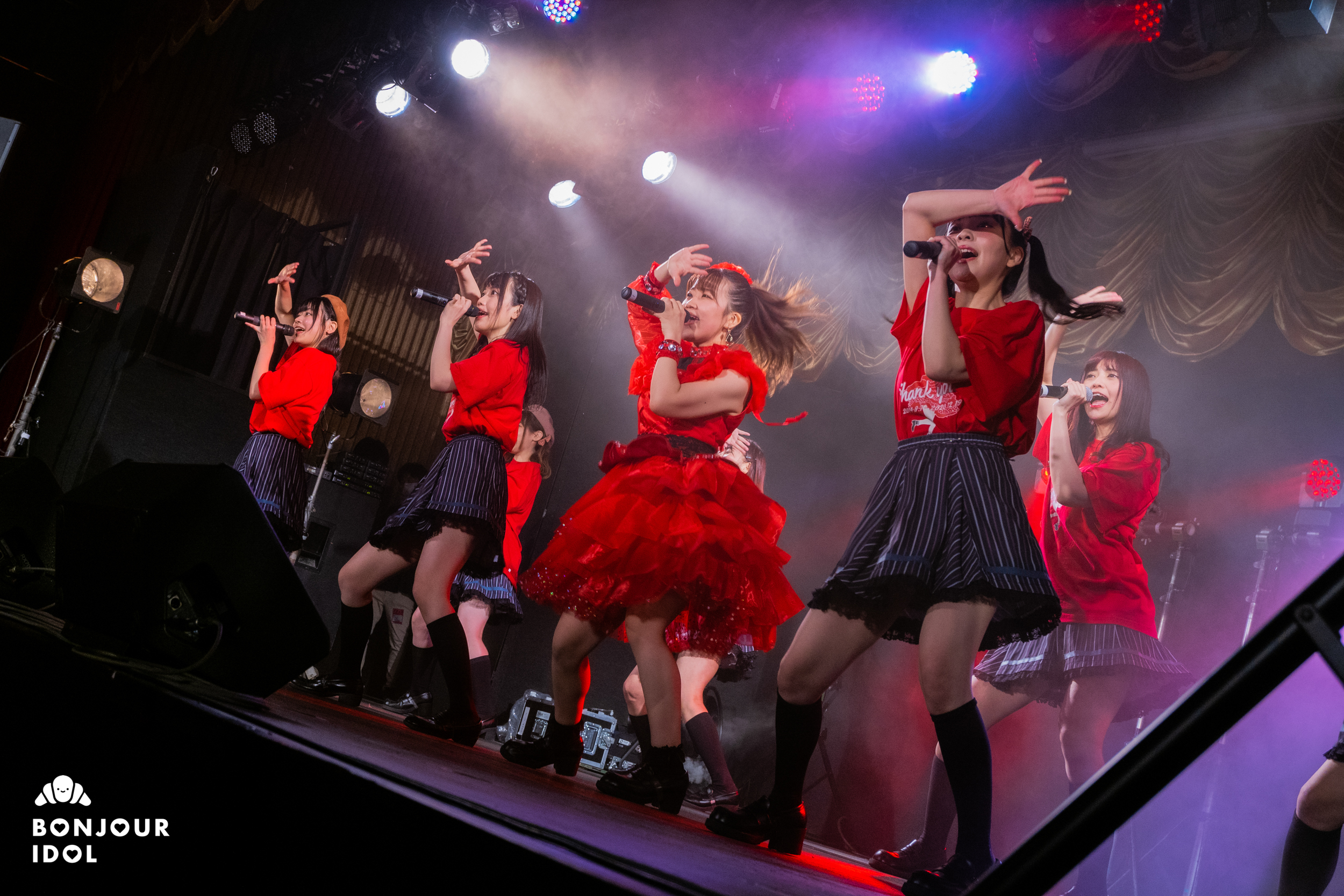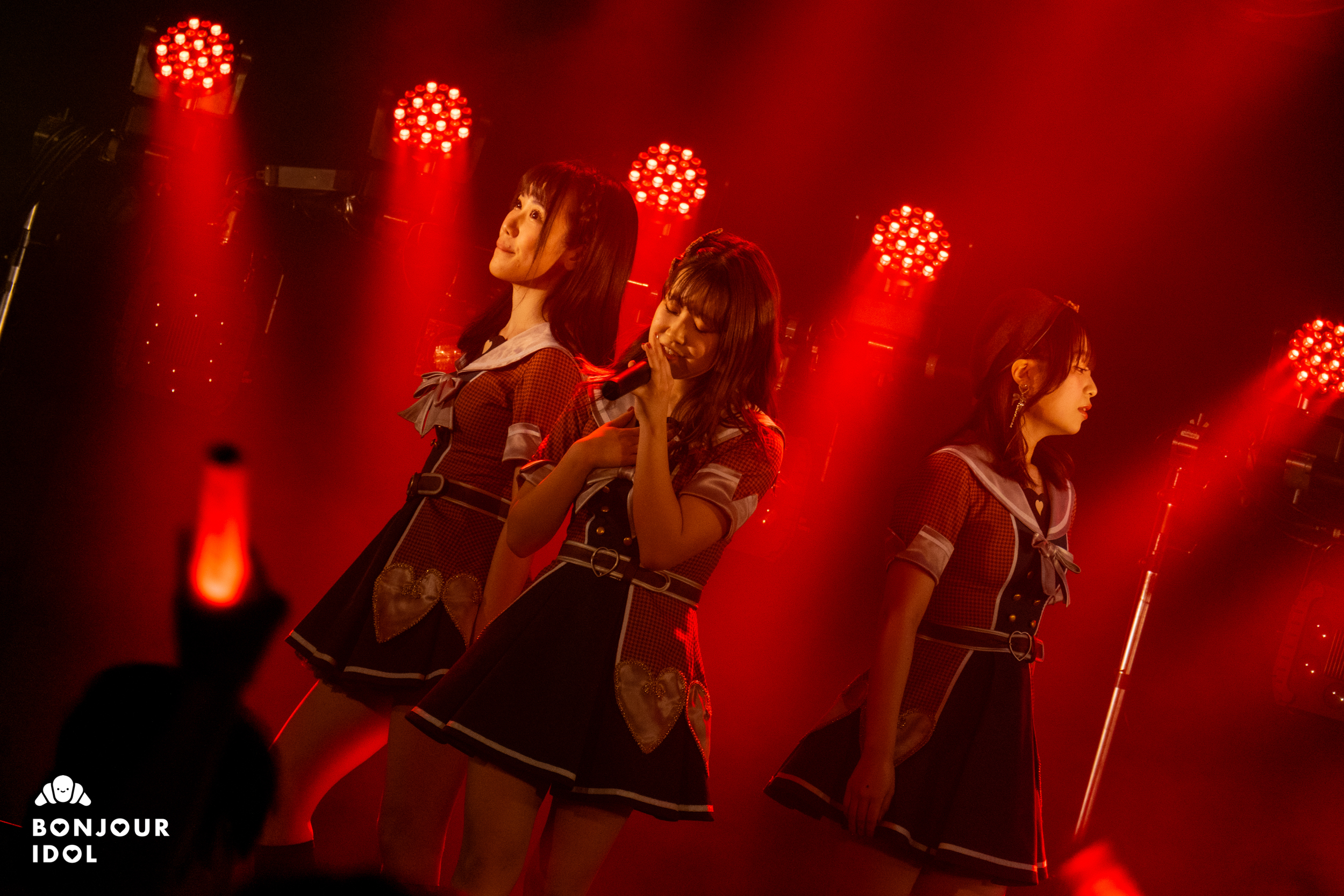 Despite the measures against the corona virus not allowing the audience to shout an encore, the fans immediately started clapping to bring the members back on stage. The encore opened on a series of heartfelt messages from the members to Nijika. Iketeru Hearts appeared again wearing red tee-shirts, and Nijika had changed into a beautiful bright crimson dress for her graduation ceremony. They joined voices on “I will”, as the members and audience started feeling overwhelmed with emotions.