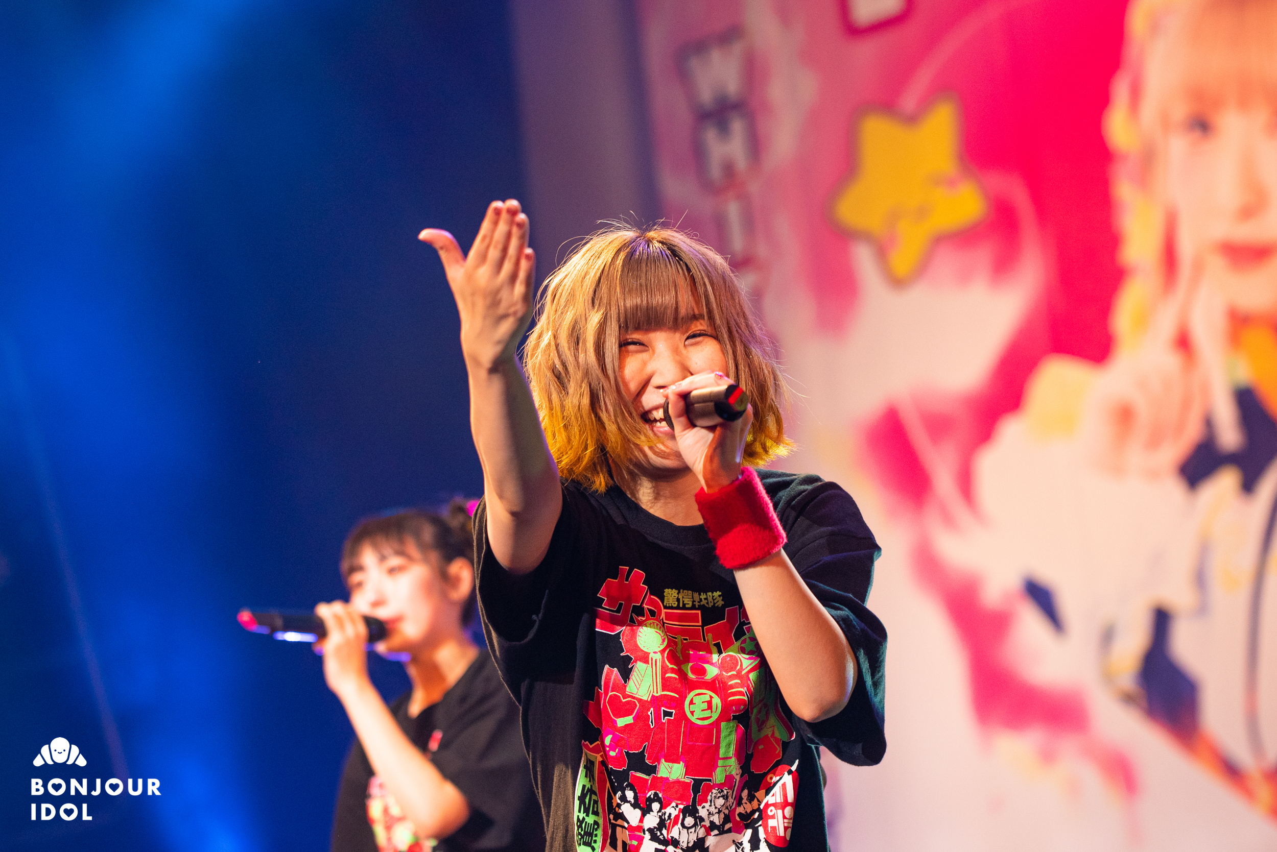 Recharged, the members kept the momentum surging forward with “You to Piazza”, excitement spilling over into “Hamidasumo!” and “Surpriser!”. Unleashing a wall of screams, You’ll Melt More! clawed their way through “Only You”, the members nearly overwhelmed by emotion as they joined their voices in unison. As she had countless times before, Younapi climbed to the top of a stepladder to sing her solo lines, but as she did, the stage curtains behind her opened, revealing a giant poster with her portrait and the words “YONAPI THANK YOU!!!!!” and “WHITE FLAME FOREVER” (referring to her member color of white). Without missing a beat, they roared on with “Music, 3-4-pun de Owacchimau yo ne” en route to closing out the main performance with “A! Sekai wa Hiroi Sugoi”.