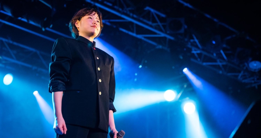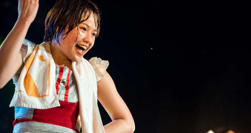 Les membres du groupe ont alors donné un petit discours une par une, commençant par les dernières arrivées. “Je ne pensais sincèrement pas que nous pourrions remplir le Shinjuku Blaze quand la salle nous a été annoncée,” se confie Mayuka Sasazawa. Elle a également exprimé son état de frustration de voir ses aînées partir, mais aussi son souhait de leur dire au revoir avec le sourire. Le discours de Runa Rukawa était pour le moins original, fidèle à elle-même, dans toute sa splendeur d’étourdie. “Je peux voir vos têtes de là où je suis, vous souriez tous, vous vous amusez bien ? Pourquoi est-ce que vous ne pleurez pas ?” blague-t-elle avec le public, faisant mine de les gronder pour leur manque de larmes à l’aube de ce triple départ. “J’ai adoré chaque minute passée dans ce ULTRAGIRL à cinq membres,” ajoute Runa plus sérieusement, “c’est vraiment devenu mon petit endroit de bonheur.”