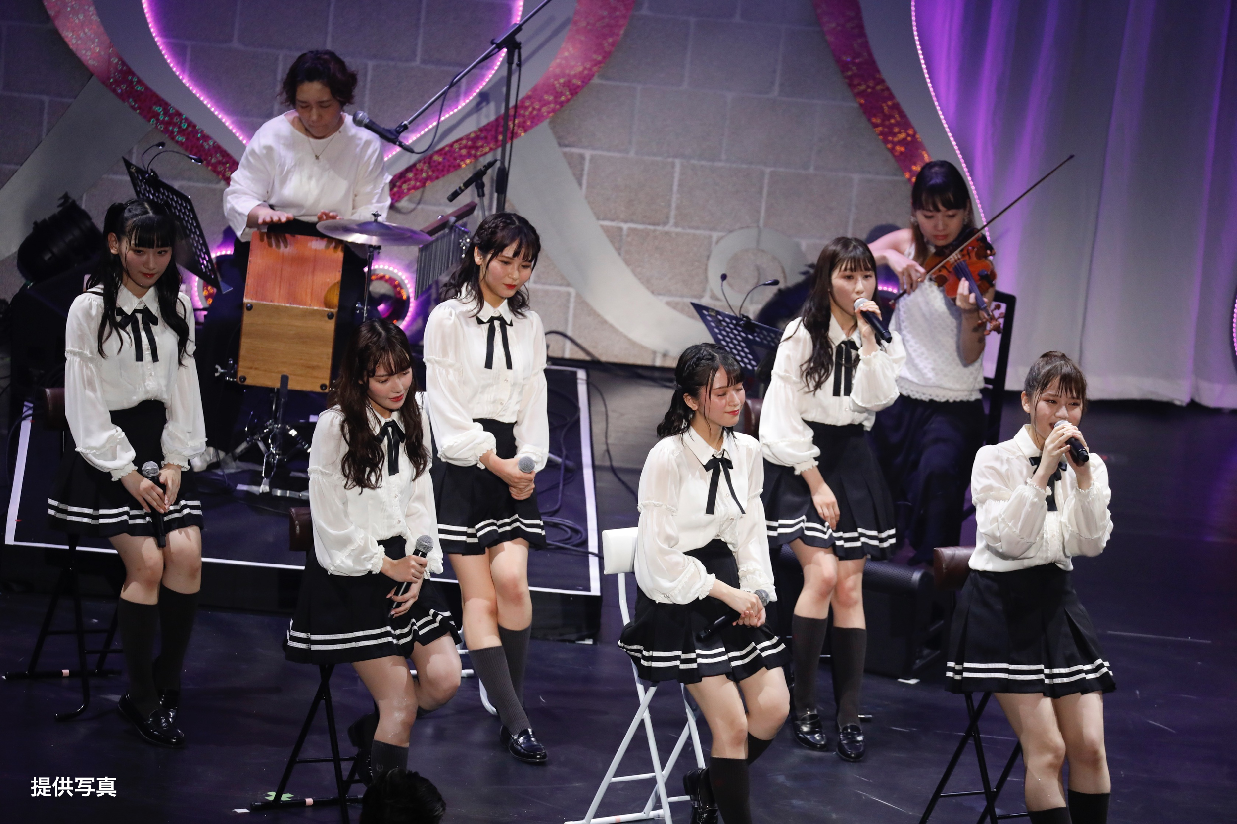 L’ambiance est à son paroxysme après ces deux dernières chansons, et à la surprise générale, un groupe de musiciens s’installe sur scène pendant le MC suivant. Accompagnée par une violoniste, une pianiste, un joueur de percussions et un guitariste, la vocaliste du groupe Morohashi Sana introduit la suite du concert. Les filles en avaient brièvement parlé pendant le Tokyo Idol Festival, c’est bien trois interprétations acoustiques que l’audience allait pouvoir écouter en exclusivité.