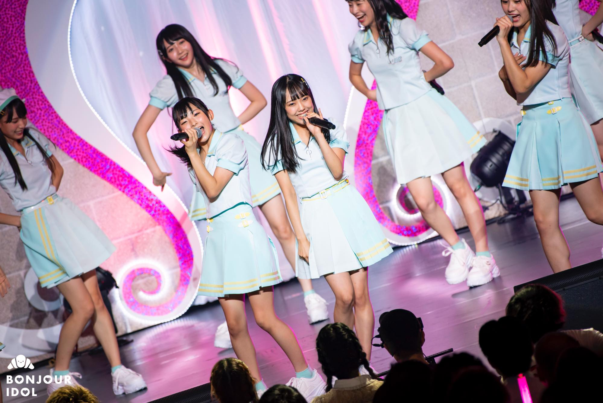 Saito Nagisa annonce ensuite la venue d’un invité très spécial. C’est ainsi que la célèbre mascotte Sanrio, Cinnamoroll (ou Cinnamon-kun pour les intimes), fait son apparition sur scène ! En effet, annoncée quelques jours plus tôt lors de la Sanrio Expo, le public attendait fermement cette collaboration entre la mascotte et le groupe. “Todoite LOVE YOU” continue le spectacle et nous avons été ravi d’observer toutes les interactions entre les filles et la mascotte nationale. À noter que le public et les membres ont été agréablement surpris par la capacité de la mascotte à danser sur cette chanson.